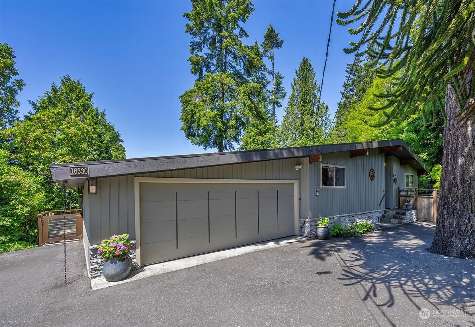 Discover tranquility in this Edmonds mid-century retreat boasting stunning Sound and Mt. views. Vaulted ceilings, exposed beams, skylights, and wrought iron railings create significant architectural interest. Hardwd flring spans main level, showcasing primary ensuite w/heated flrs, second bedrm, half bth, view living rm, gas fireplace and dining all blending seamlessly w/gourmet kitchen featuring granite & stainless appls. French doors invite you out to spacious view decks. Lower level includes open living space, gas fireplace, bedroom, remodeled bthrm and luxury vinyl flring.French doors open to lower deck & yard providing easy indoor-outdoor living. 2-car garage. Experience the perfect blend of comfort and style in this peaceful retreat!