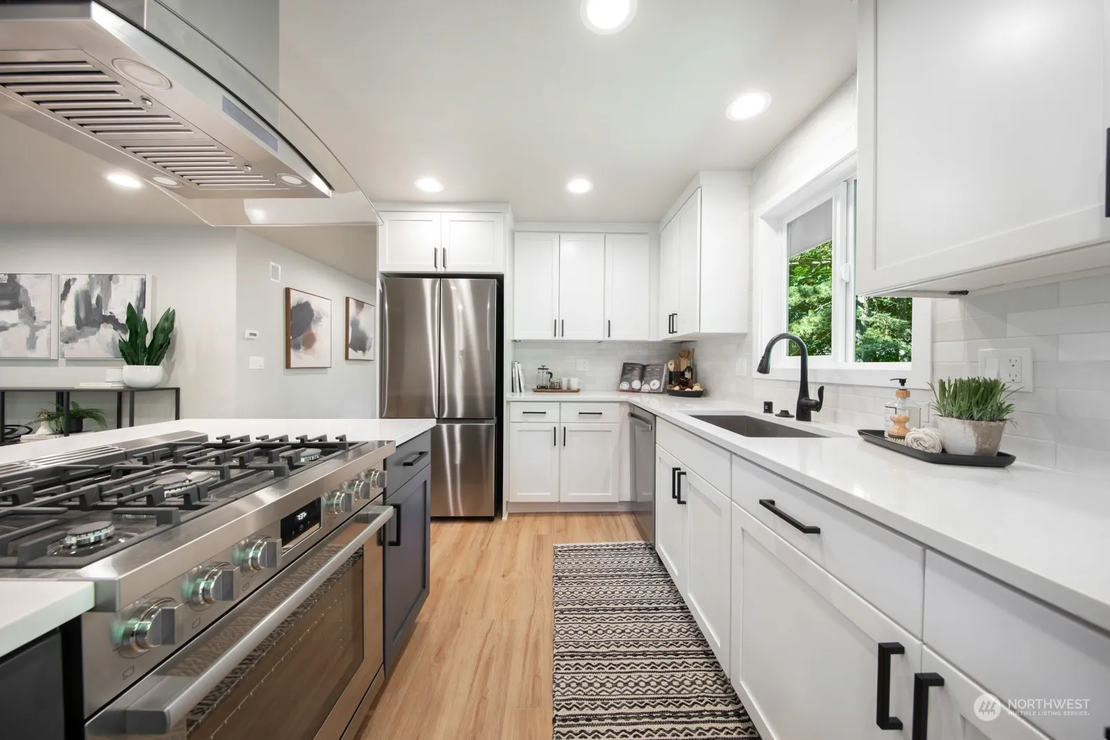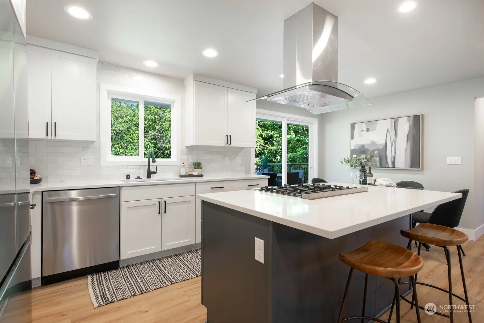 This is it! Welcome home to an incredibly renovated home in Edmonds! This spacious residence features three bedrooms up PLUS a primary bedroom off the living room complete with soaking tub, walk-in closet, and spa like shower. Enjoy a chef’s style kitchen with huge entertainment spaces and formal dining space. Head downstairs to the fully finished basement with two additional bedrooms and a massive rec room to relax and watch movies! Head outside to the large deck overlooking your fully fenced, freshly landscaped yard! Oh, and the house has newly installed A/C, perfect for summer time! This house has been completed remodeled from all new siding and roof to the completely rebuilt interior. Minutes to shops, stores, and downtown Edmonds.