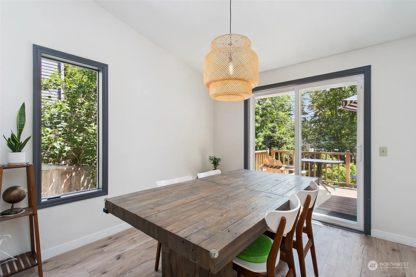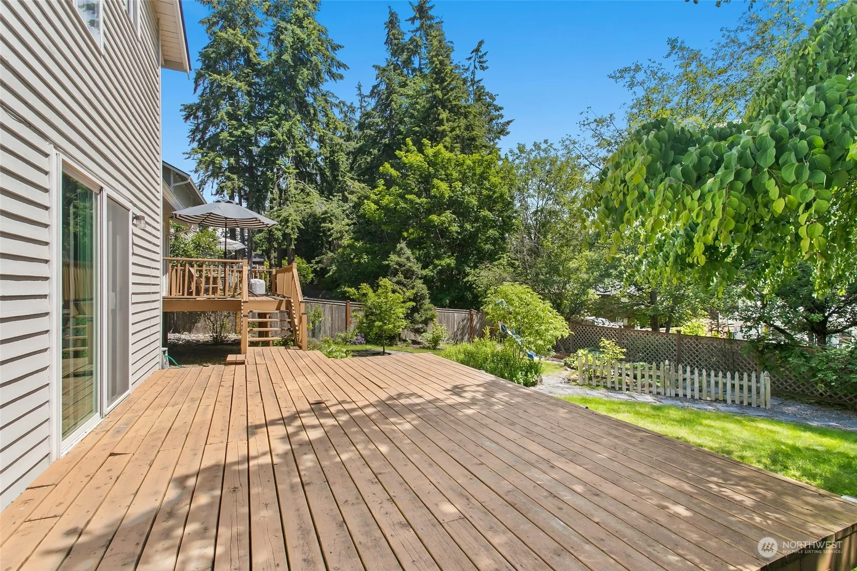 Light-filled, updated 3 BR, 2.25 Bath home located in the desirable Picnic Point neighborhood. Upon entry you will find high vaulted ceilings, open and airy layout w/ nwr floors and trims. Enjoy cooking in the ktchn which features nwr appliances, skylight & a view of the park like setting in the yrd. In the lower lvl cozy up to the gas fireplace which is next to the laundry room & 1/2 bath. Primary boasts recently updated 3/4 bath & view of professionally landscaped yard. 2 lvl of decks overlook the large, fully fenced yard, shed & garden beds. 2 car grg. Wired for a generator. Detached shed has electricity and can be used as office/art studio. EZ freeway access; close to Boeing, Airport; Picnic Point Beach & award winning Mukilteo Schools.
