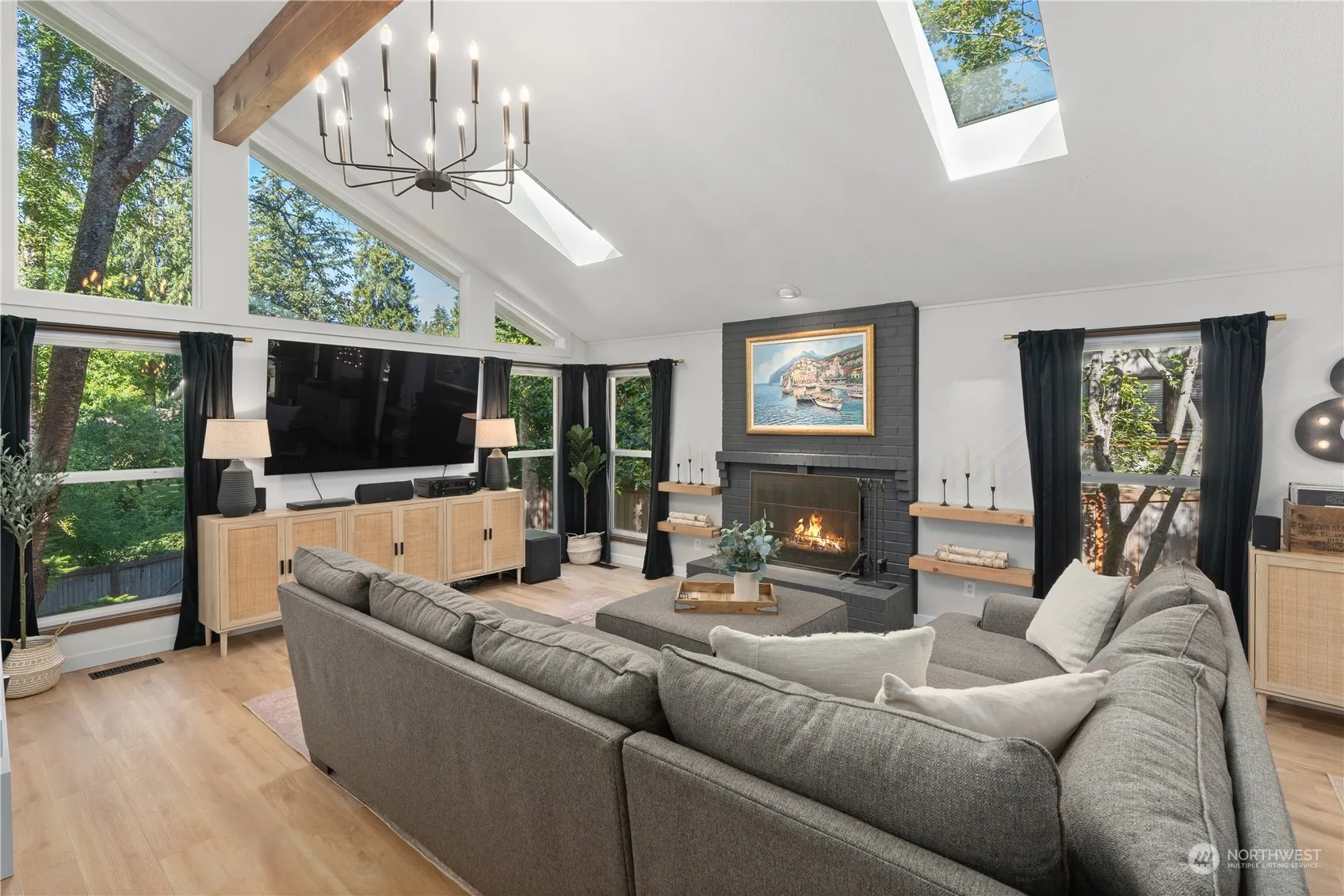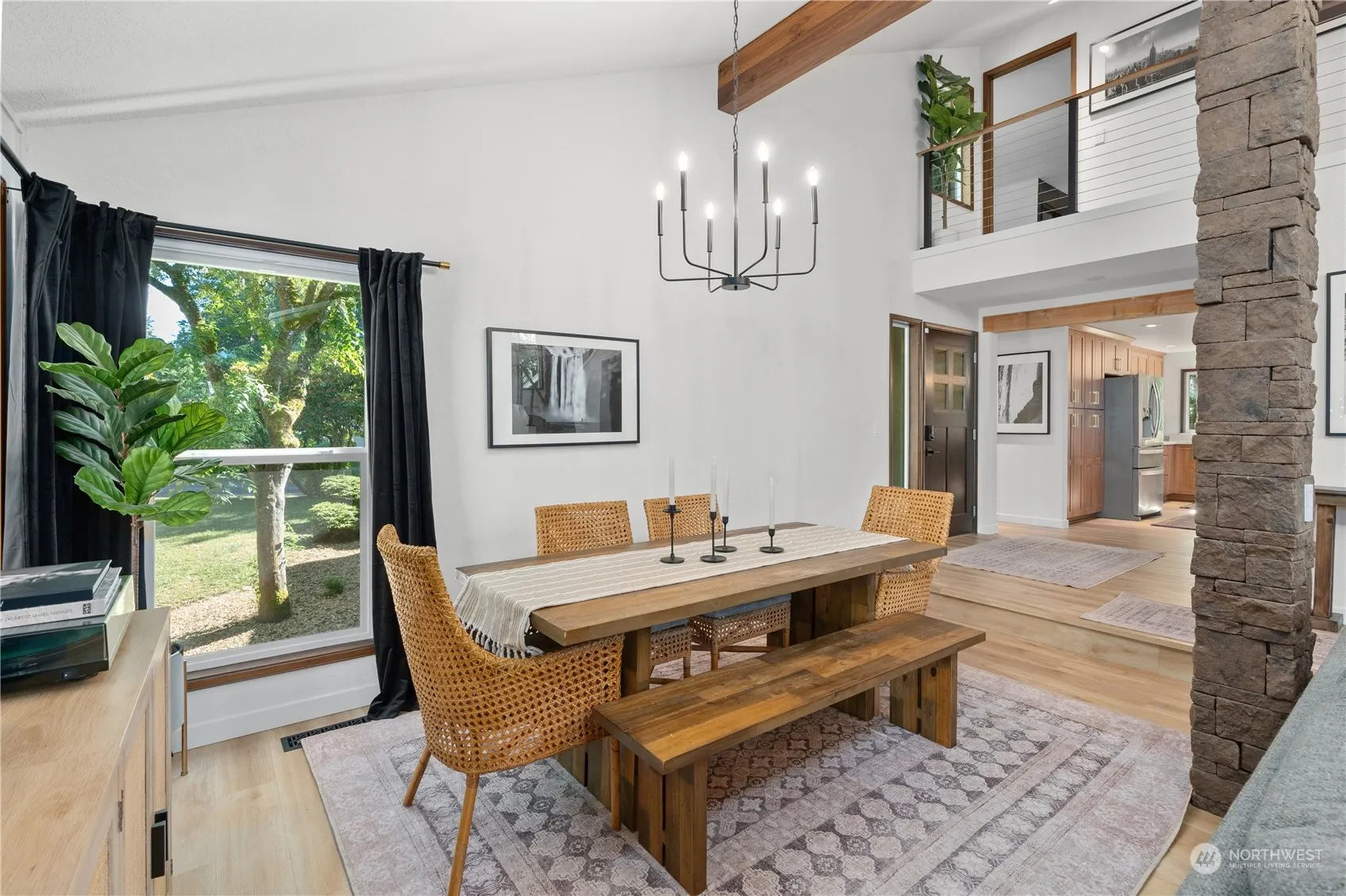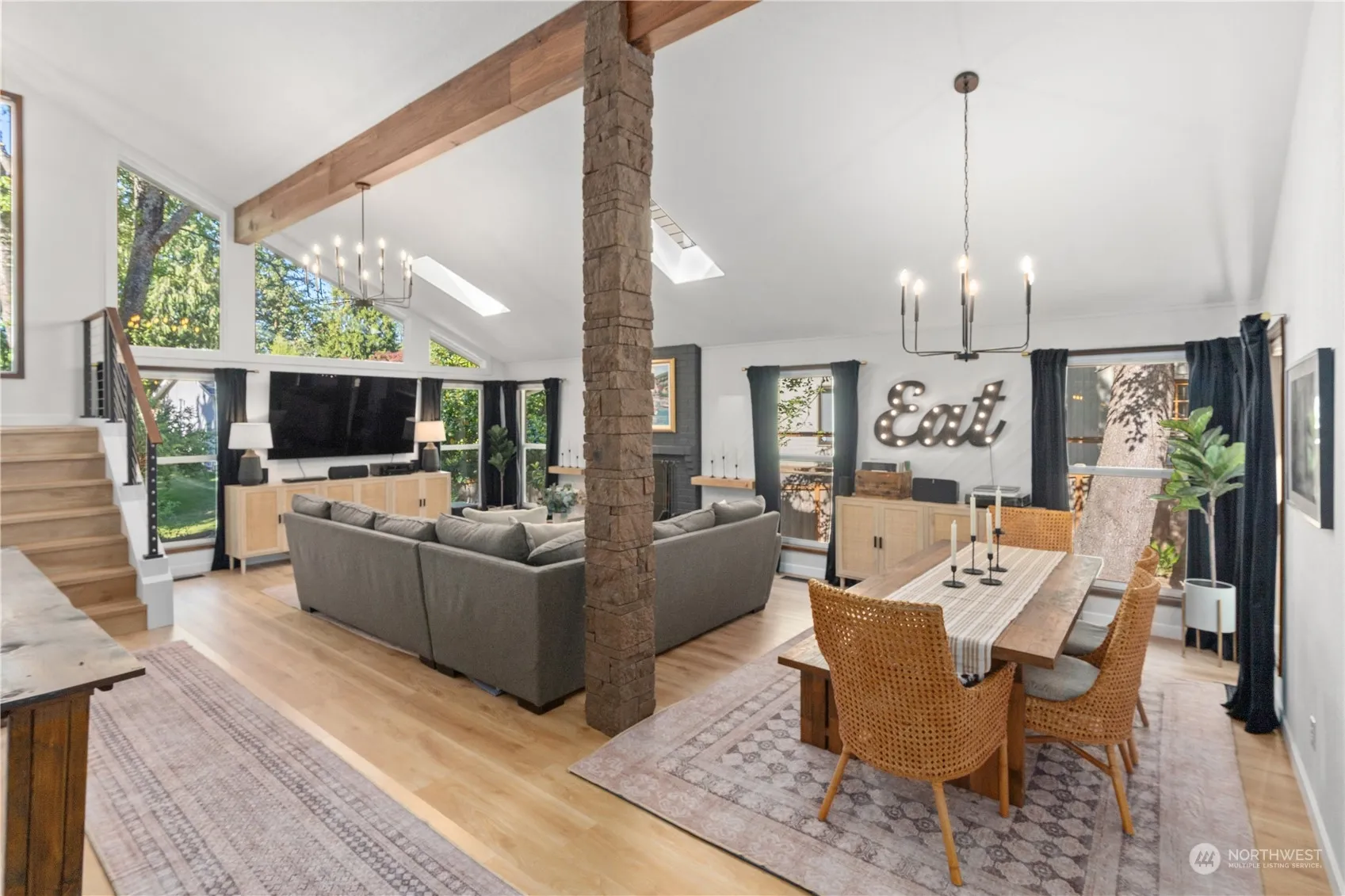 [ARTISTICALLY REFINED] Stunning Edmonds home located on a private drive w/only 3 homes just minutes from DOWNTOWN! $100k in recent UPRGRADES. WIDE open living spaces w/tons of natural light, VAULTED ceilings, WOOD BEAMS, MODERN railings, & wood burning FIREPLACE. Main floor has new LVP wide plank flooring throughout, molding + interior paint. Kitchen w/extensive wood cabinetry, oversized island & QUARTZ counters. Sitting area w/brick fireplace & slider that leads to deck w/NEW HOT TUB! Bonus room w/wet bar that could be a den, TV room or possible 4th bed! 3 beds up including the primary w/it’s own en-suite & accent wall. Brand new A/C unit installed & ENDLESS STORAGE. Oversized 2 car garage w/additional parking. Lush + mature landscape!