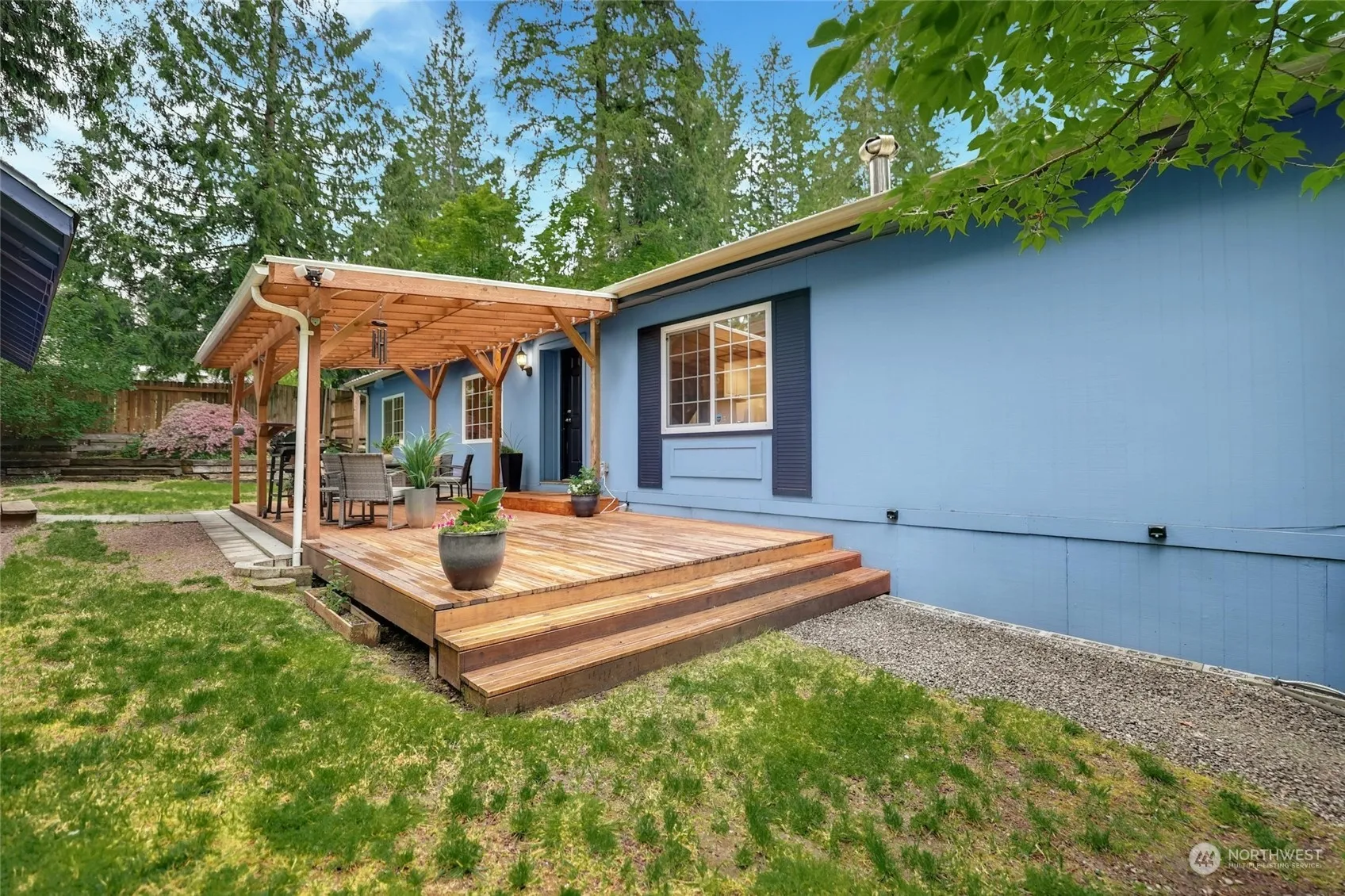 Life is better at Ames Lake! Welcome to this meticulously maintained and updated one level! With an open floor plan and amazing outdoor spaces, catch the summer entertaining on the spacious covered deck or take yourself down to the beach for a swim in private Ames Lake! Updates galore including new paint inside and out, new laminate plank and tile flooring, new carpet, remodeled kitchen and bathrooms, California-style closets and more! The hard parts are done: metal roof, tankless water heater, new furnace and resurfaced deck. Now for the fun! Enjoy the privacy of a fully fenced and landscaped oasis offering garden space, a huge shed for tools and toys, and parking for an RV/boat. Great location mins to shopping & parks. Pre-inspected.