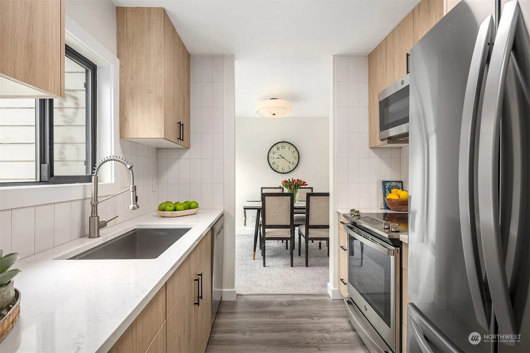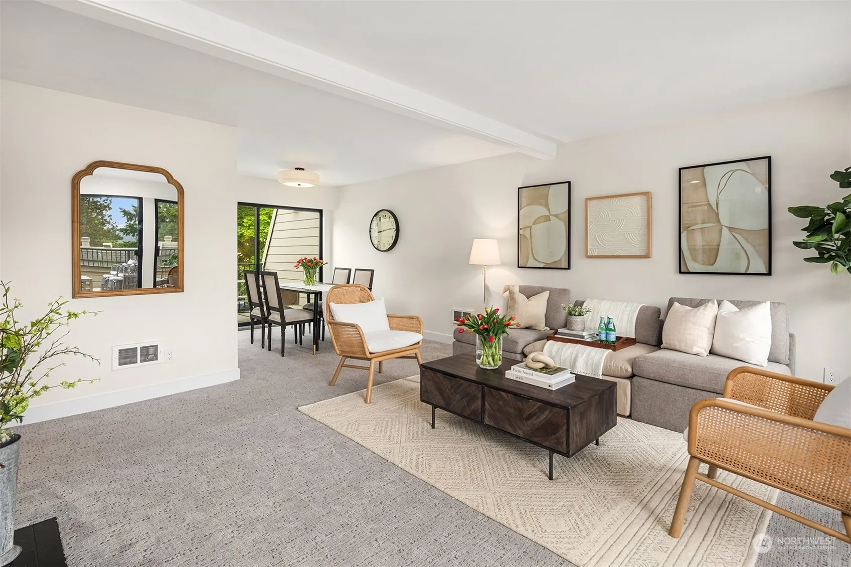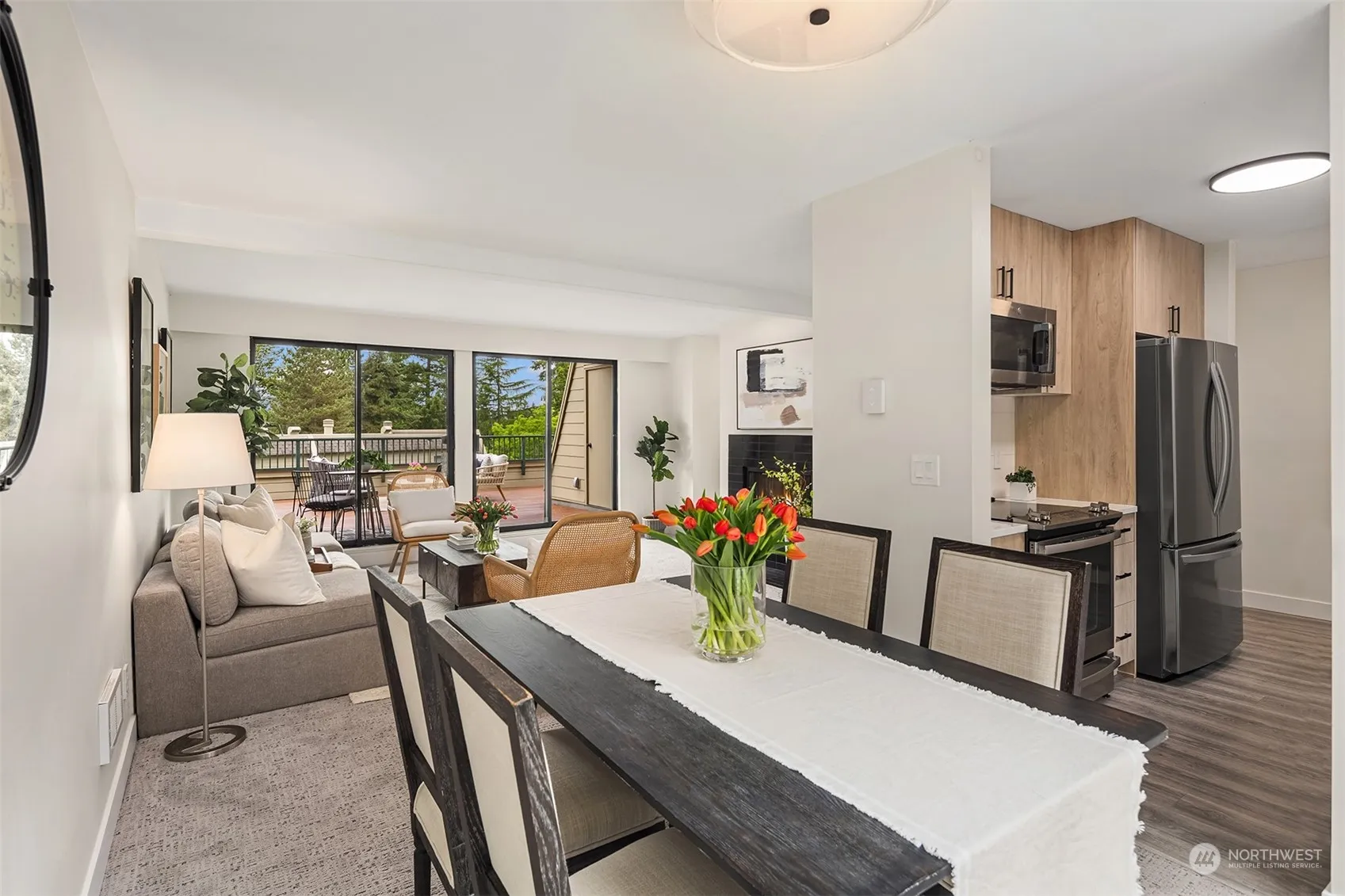 Turnkey two story end-unit oasis with expansive decks for enjoying summer in Downtown Redmond. Light-filled living spaces with floor-to-ceiling windows welcome you to the 500+ sf west facing main deck. Updated kitchen including custom cabinets, solid surface countertops and newer appliances. Two generously sized bedrooms with high-end closet system in primary bedroom & updated bathrooms. Fresh paint with newer flooring throughout. Quiet community and a quick stroll to restaurants, shops, movie theater and Light Rail ETA 2025. One mile from Redmond Town Center, two miles from Marymoor Park and minutes to tech campuses. Second free parking spot upon HOA approval after sale. No rental cap!