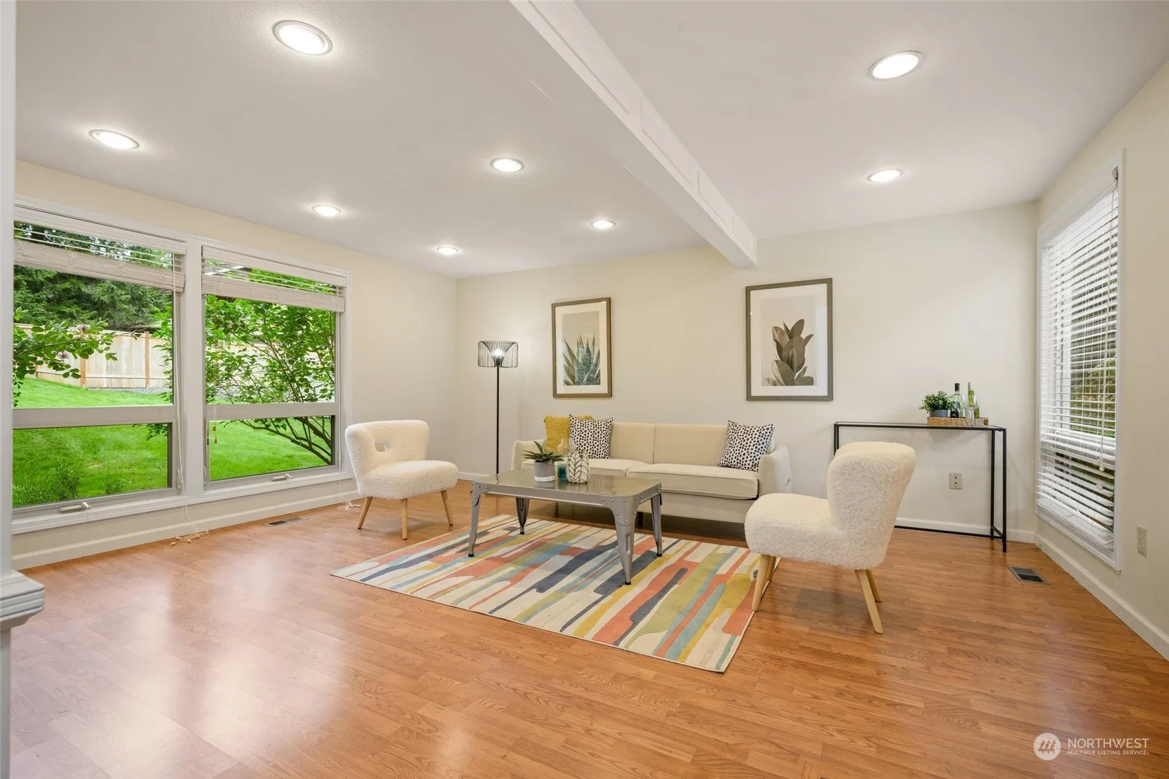 Highly sought after and rarely available home in The Meadows! This East facing home features 3 beds + huge bonus/4th bed, 2.25 bath. The west facing floor to ceiling windows capture all the sunlight and privacy of the lush green yard. The kitchen features Corian counters, island, gas cooktop & SS appliances. Exterior features: 50-year roof & 2-car garage. Community amenities include a clubhouse, pool, tennis courts & RV parking. Top-rated LW Schools. Minutes to Microsoft, WALK to Marymoor Park via Bridle Crest Trail, DT Redmond, 520, nearby community parks & new light rail! LOW HOA dues. Well run community. Only one shared wall & Pre inspected!