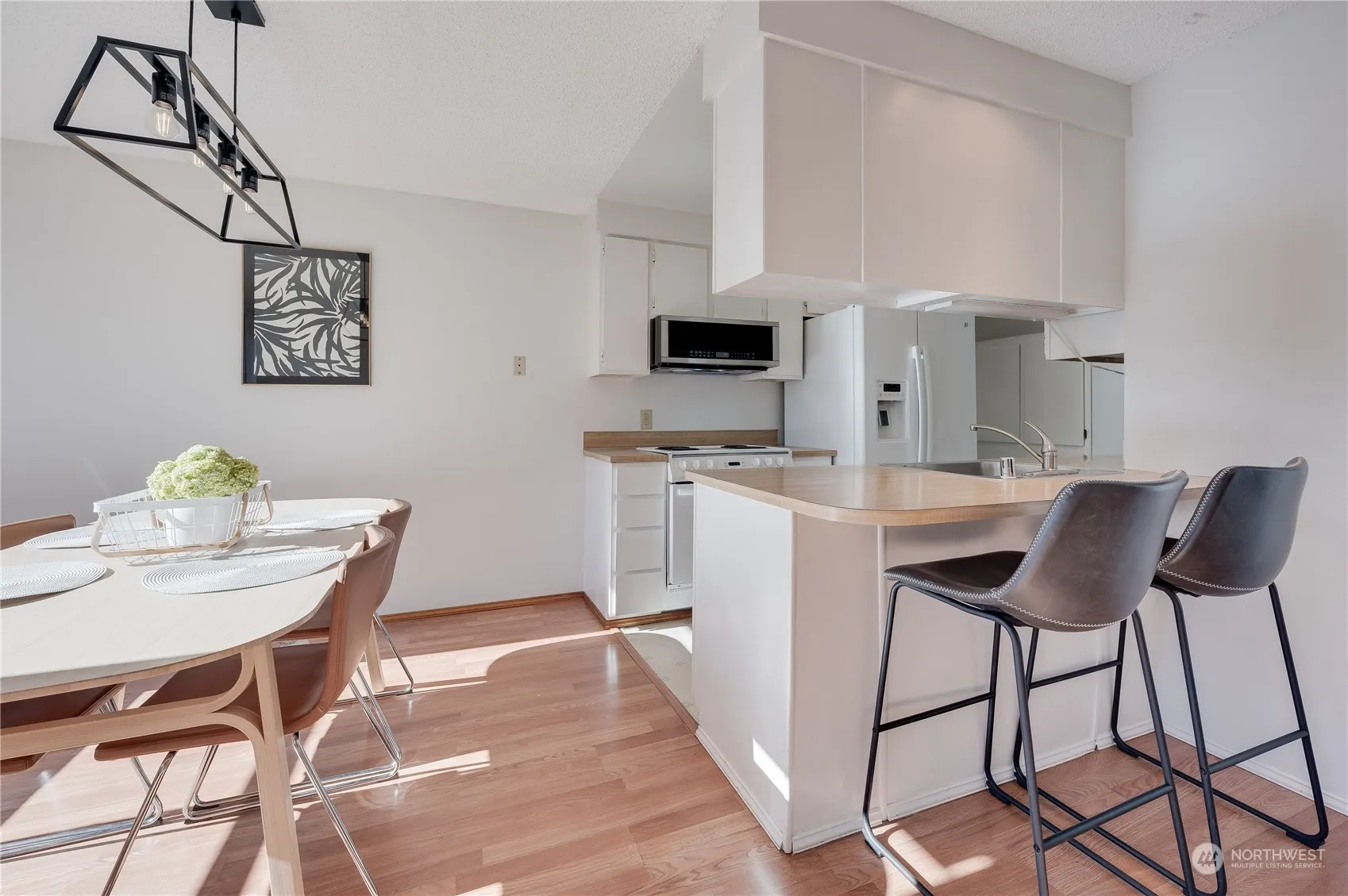 Welcome to this charming 2-story, two bedroom 1100 sq ft condo located in Villa Del Ray Condominiums in Edmonds. Simplicity at its finest. Entry opens into the living space; follow the hallway to the dining area and kitchen, which boasts plenty of natural light. Enjoy your private, sunny deck off the kitchen. Washer and dryer are conveniently located upstairs near the two large bedrooms and full-size bath. Both bathrooms have been nicely updated. The hot water tank is 3 years old. All appliances stay. Perfect starter home or rental. No rental cap. 2 parking spots. Roof 1 yr new. Home is located near bus routes, grocery stores, and freeway access. Welcome home.