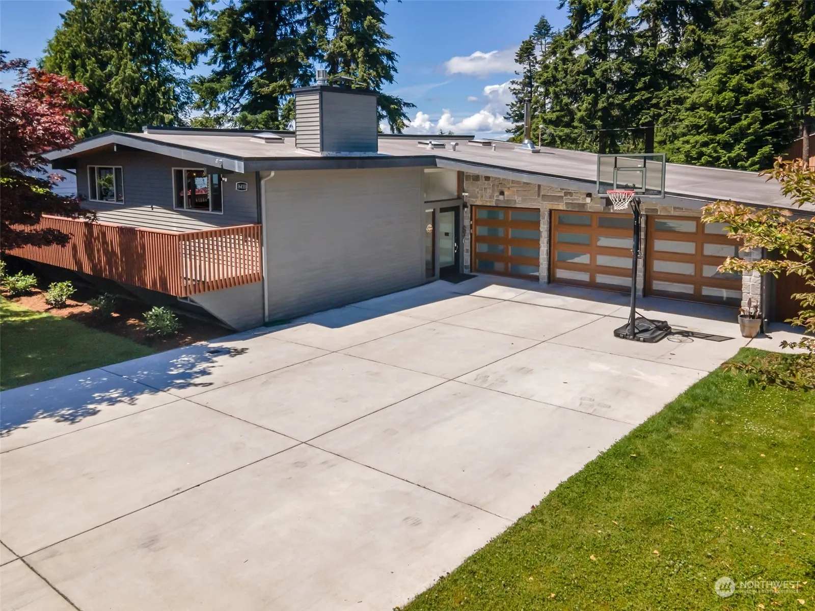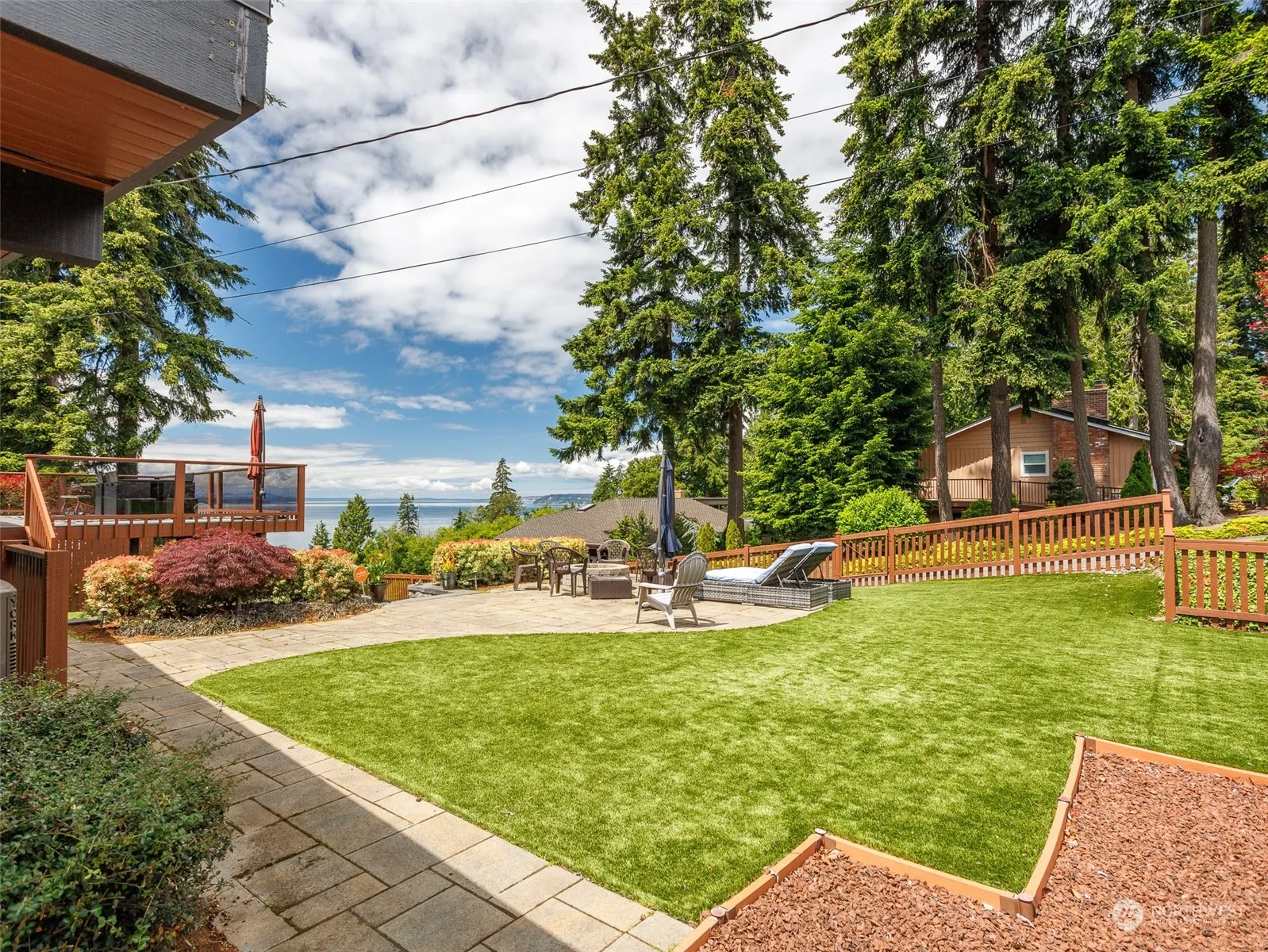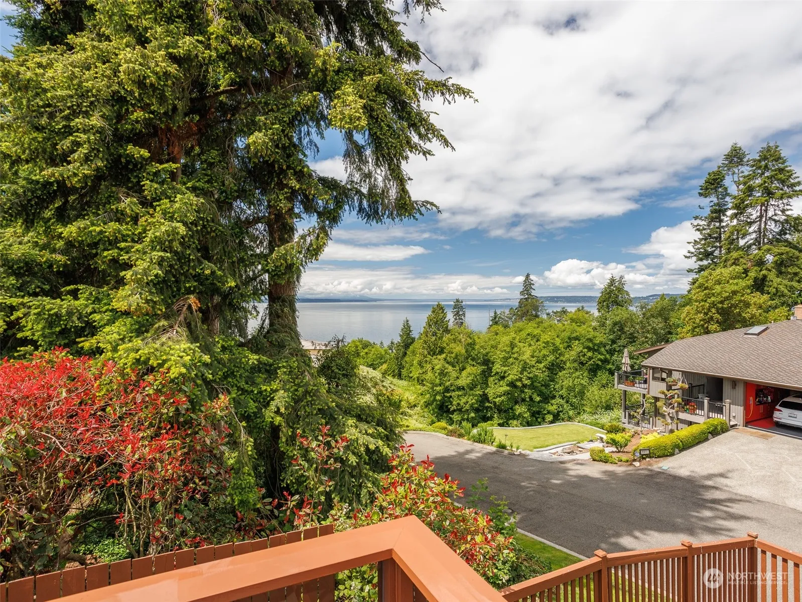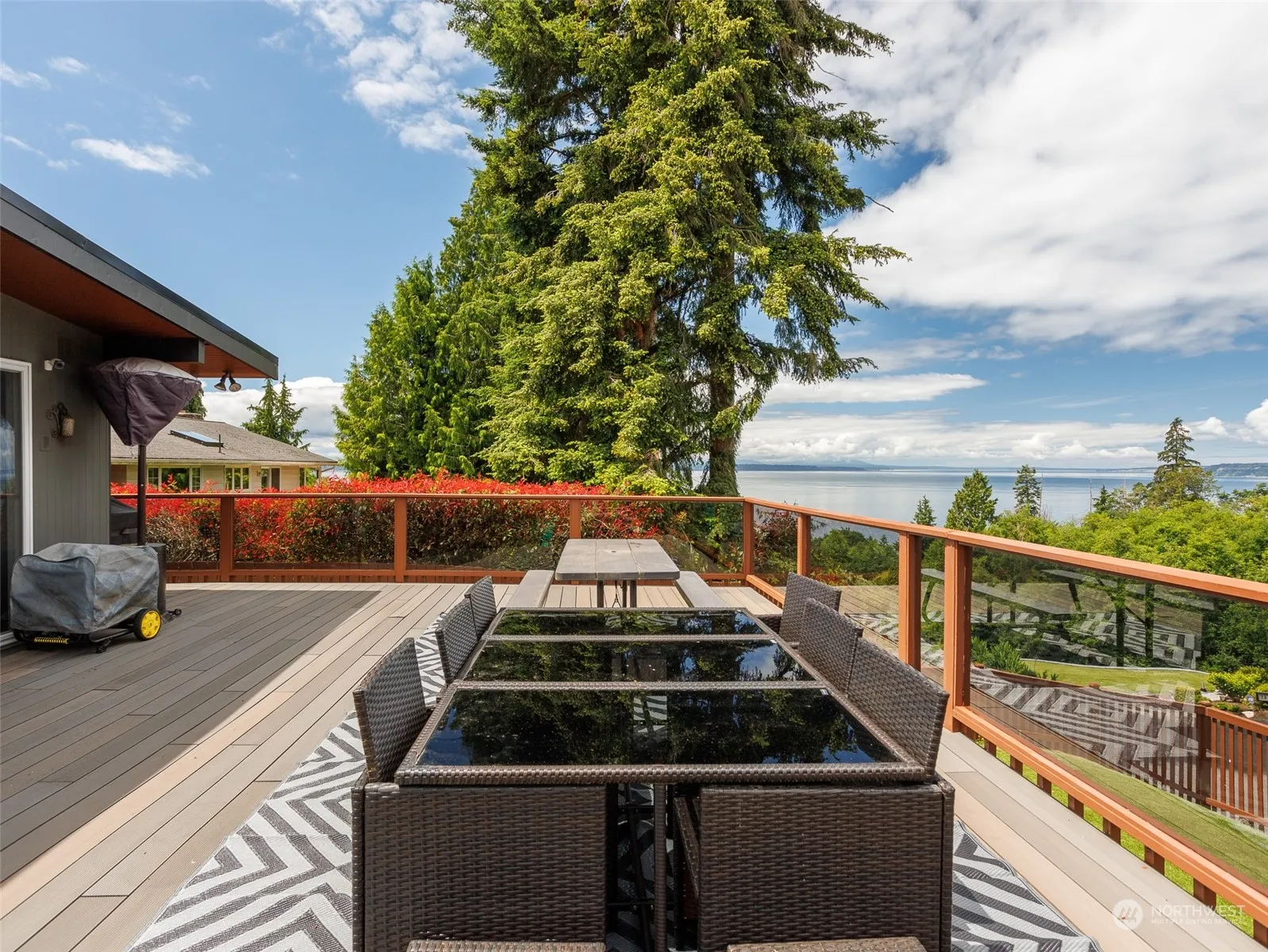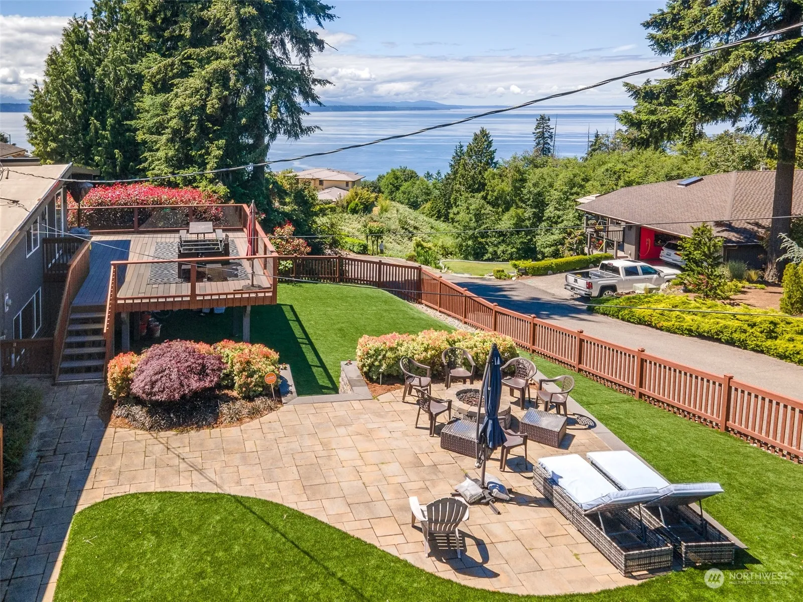 Come home to a serene view of the sound. This home has undergone extensive renovations over the last 5 years. Wrap-around bamboo deck with plumbed natural gas grill. The yard has high quality artificial turf, sprinklers/irrigation, plumbed gas fire pit. Laundry room with dog door leading into a fenced dog run with turf. The kitchen has new quartz countertops & custom backsplash, double oven with convection, oversized refrigerator/freezer & induction cooktop. Intelligent alarm system. The heat pump warms & cools the home. Both light filtering & black-out blinds on all windows, west-facing windows have exterior sunshades. Skylights with remote opening & blinds. Attached 3 car garage. Many more luxuries than room to list. Welcome home!