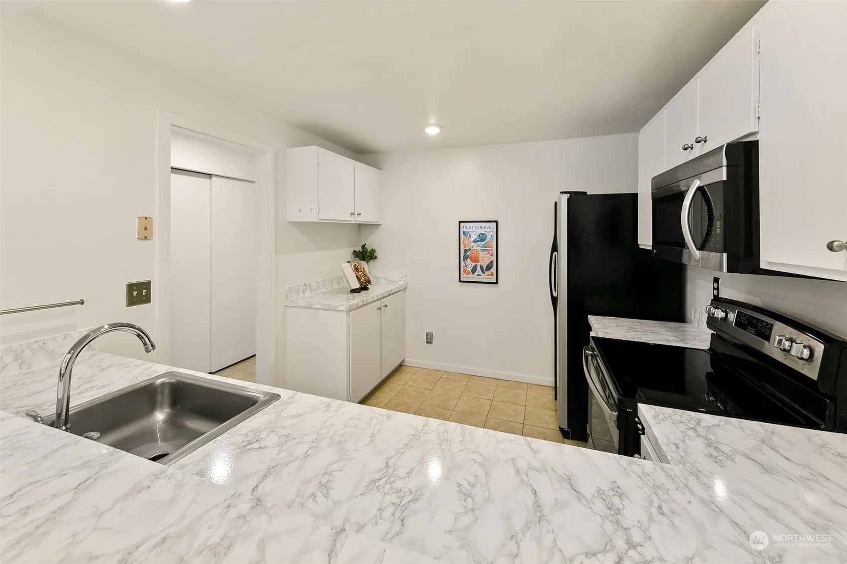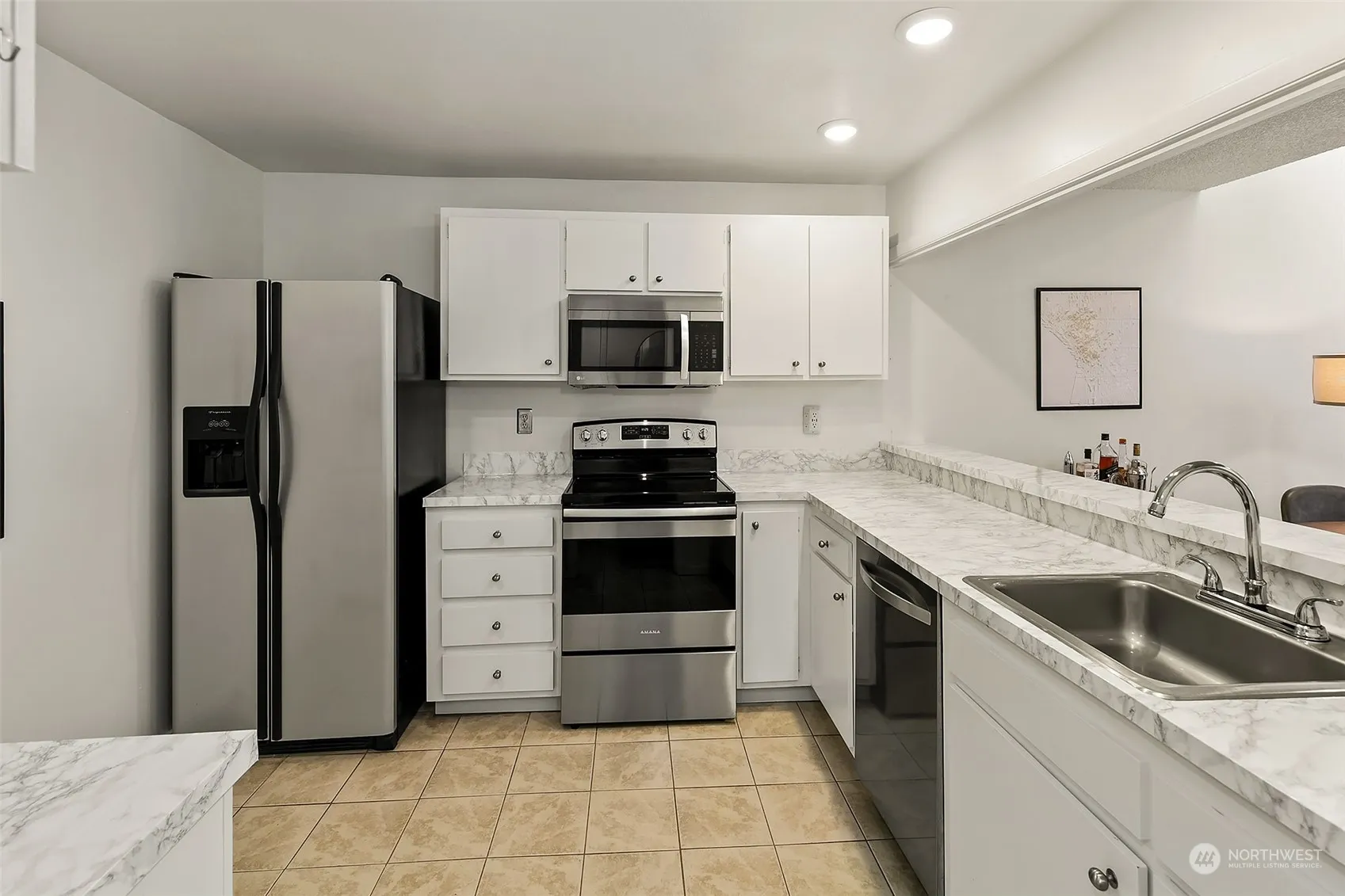 Welcome to Sixty-01! Top floor 1 bed 1 bath condo with vaulted ceilings, open kitchen and open living space. Beautifully updated with new faux marble countertops in kitchen and bathroom. Assigned covered parking space with extra non-assigned parking and convenient access to main road. Enjoy all resort style amenities including gated entry, community clubhouse, fitness gym, billiards room, tennis & volleyball courts, 4 swimming pools, 3 lakes, 83 acres of trails/parks to explore and more! Minutes to Microsoft, Google, Meta offices and highway 405 & 520. No rental cap! Come tour today. Pre-Inspection available upon request. Seller is a licensed real estate agent.