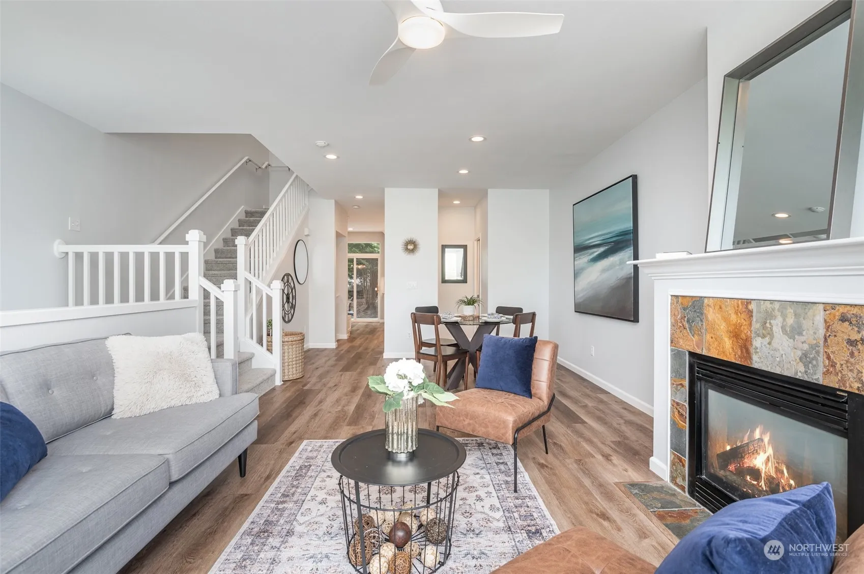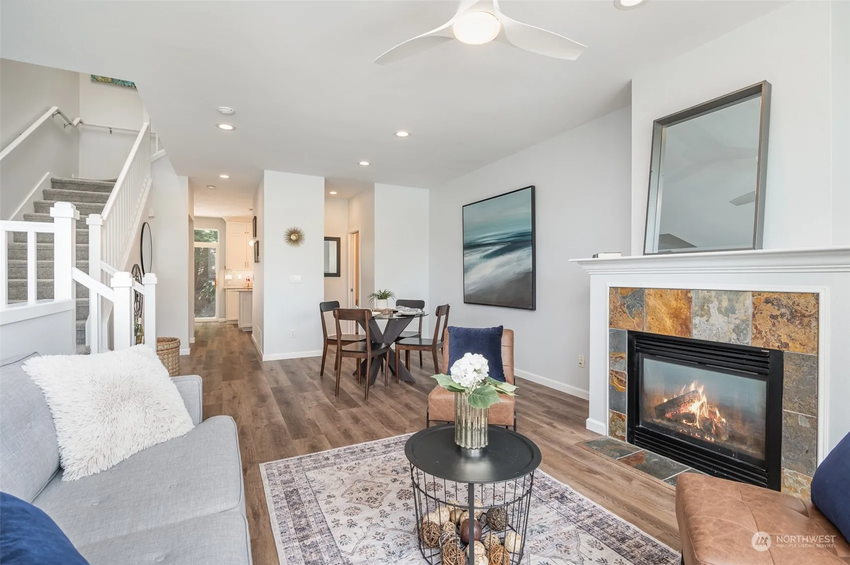 Welcome to this spectacular remodel in the sought after community of Meadowview at Rivertrail. Delight in this 2bed/2.5bath townhome offering contemporary living in a prime Redmond location. Modern kitchen is a chef’s delight featuring sleek countertops, stainless appliances, ample cabinet space and built in banquet for casual dining. Spacious, main living area with cozy fireplace overlooks community greenspace. Retreat to your expansive primary bedroom with vaulted ceilings, updated bath and large walk-in closet with custom organizers. Additional bedroom/office & laundry round out this level. Pre-inspected for peace of mind, with new H20 heater, A/C, fresh paint, new carpets and vinyl plank flooring, there’s nothing left to do but move in!