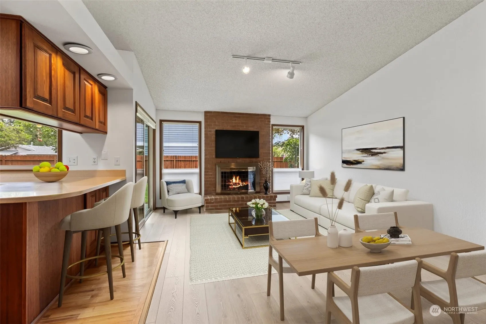 Welcome to this quiet, charming, turnkey, Oakbrook rambler, where comfort meets elegance. Large corner lot w/unique layout to the area, this beautiful home boasts soaring vaulted ceilings w/skylights providing an abundance of natural light throughout. New roof, paint, newer windows, furnace + other updates that matter. Enjoy the primary retreat w/an en-suite and a spacious WIC. Beautiful LVP flooring. The living room’s fireplace, w/a brick surround + hearth adds a cozy touch. The efficient kitchen has updated premium, soft-close cabinets w/lots of pullouts, bar seating, making it ideal for casual dining & gatherings. Enjoy a tranquil backyard filled w/mature landscaping + patio providing indoor/outdoor living in coveted community, Must see!