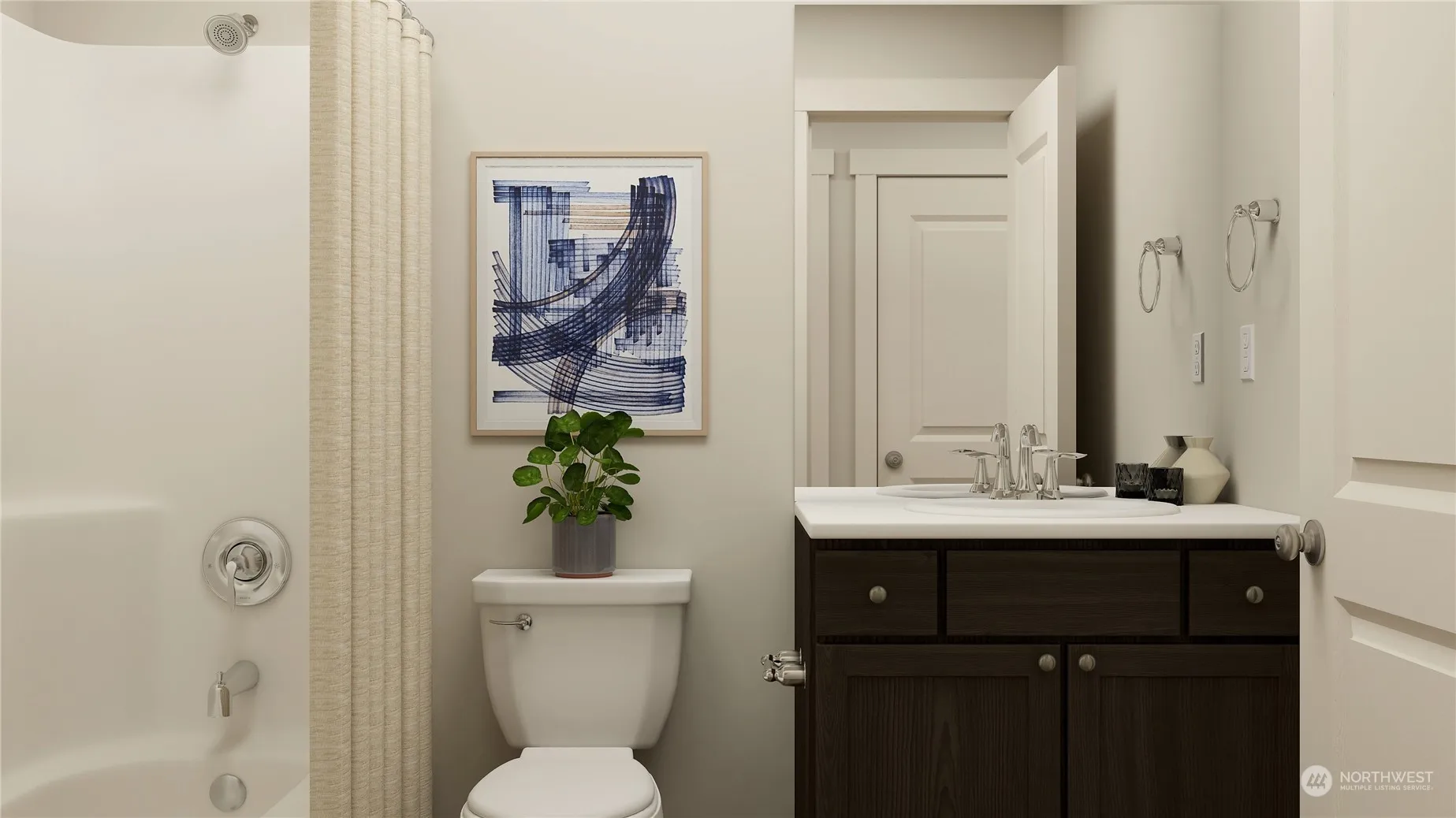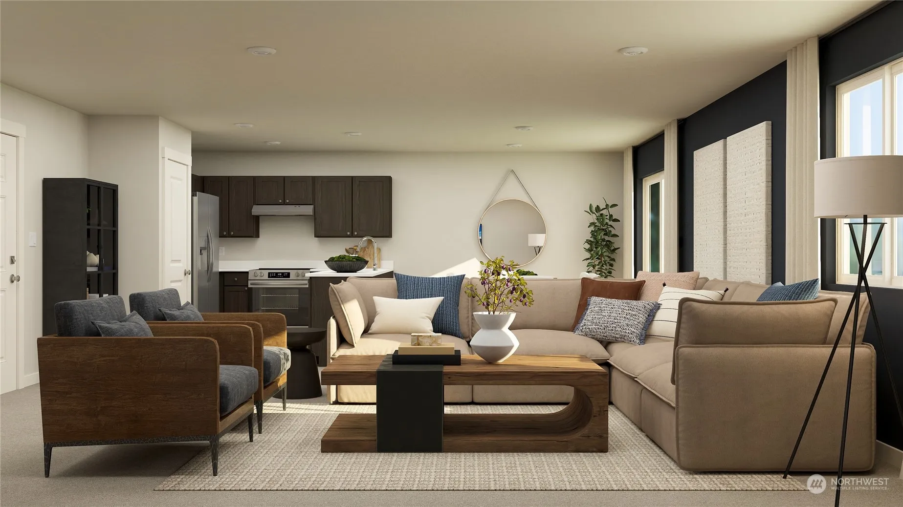 The first level of this new two-story home is host to an inviting open floorplan that combines a stylish kitchen with Quartz counters, shaker cabinets, and SS appliances. The formal dining room and a Great Room ideal to gather with friends. Four bedrooms can be found upstairs, including the owner’s suite nestled into a private corner at the back of the home, complete with a walk-in closet and en-suite bathroom. A two-bay garage completes the home. Photos are for illustrative purposes only.