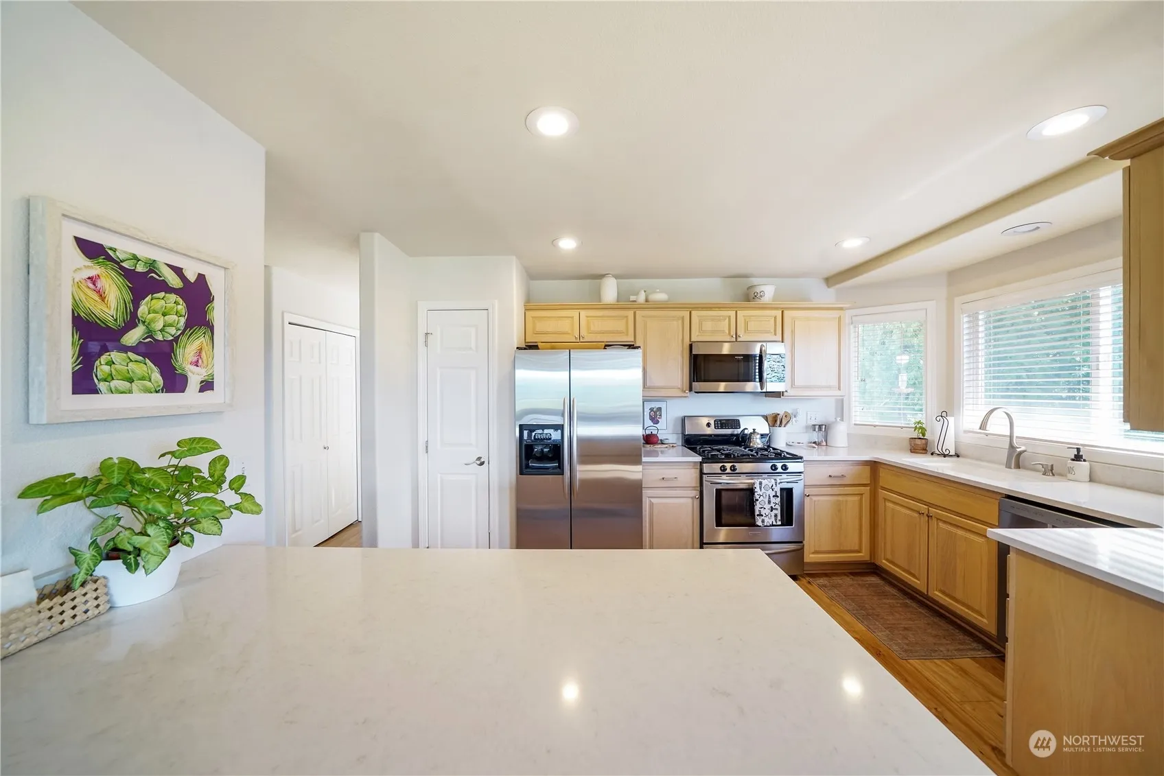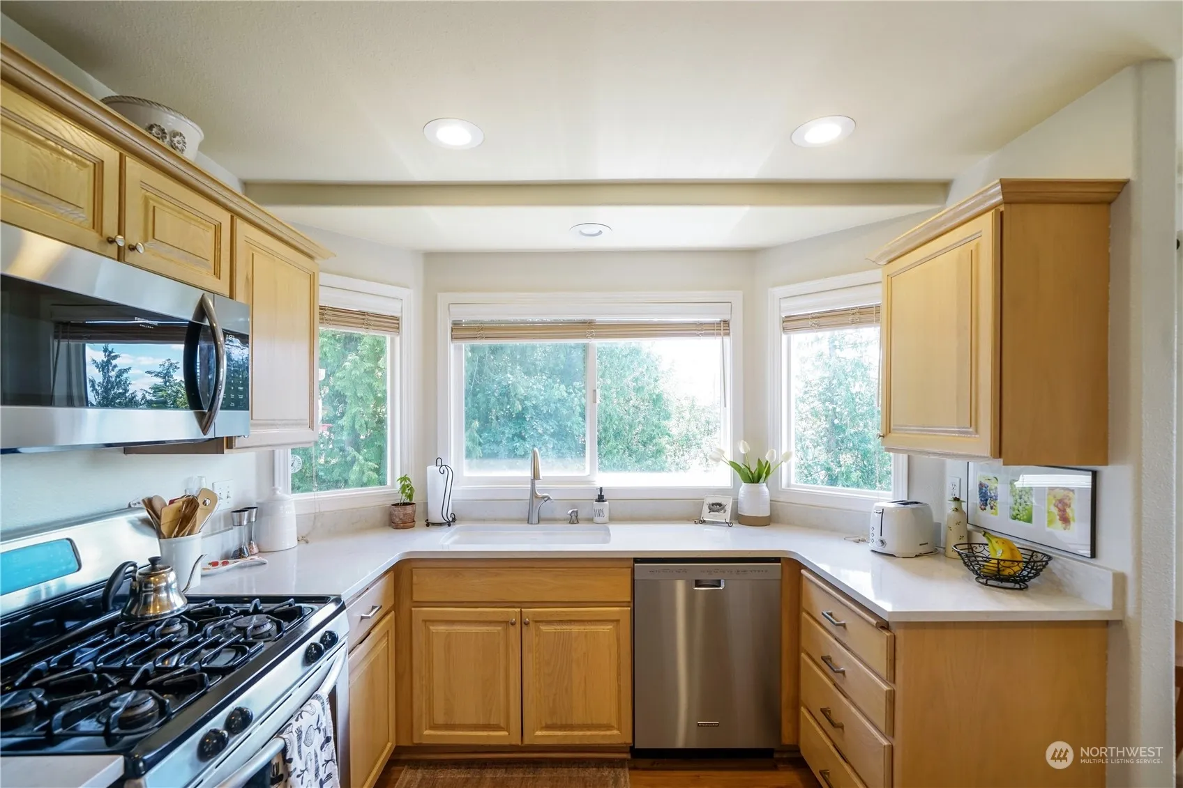 Exceptional 2,596 sq/ft completely updated modern townhouse with City views now available. Main floor boasts 2 bd rms, 2 full bth rms, covered private porch leads to foyer entry, well lit kitchen w/ island, quartz countertops, dining rm, living rm w/ gas fireplace, 836 sq/ft of composite decking installed in ’22, primary suite w/ spacious bath rm, double vanity, soaking tub, & walk in closet, separate utility rm off attached 2-car garage. Downstairs features 2 bd, 1 full bth, walk in closet, storage rm, and family rm that leads to back decking. Gas water heater, furnace, range, & fireplaces. Furnace replaced in Jan. ’22. Roof replaced in Sept. ’22. Laminate flooring installed ’21. Carpets installed ’22. Gutters replaced Mar. ’24.
