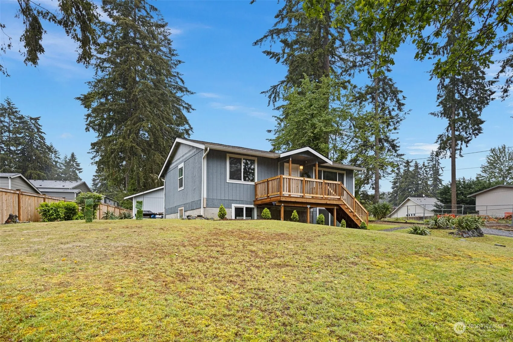Fantastic opportunity for immediate monthly income with a 12-month lease at $2,600/month. Recently renovated 3-bed, 2-bath home with new decks, upgraded bathrooms, flooring, and kitchen (island counter with eating bar; stainless appliances, shaker cabinetry w/crown molding). Heat pump, AC, electric fireplace. Bonus: Detached garage ready for 2-bedroom ADU conversion, with full plans included. Prime location near JBLM, 5 mins to American Lake Park. No HOA.