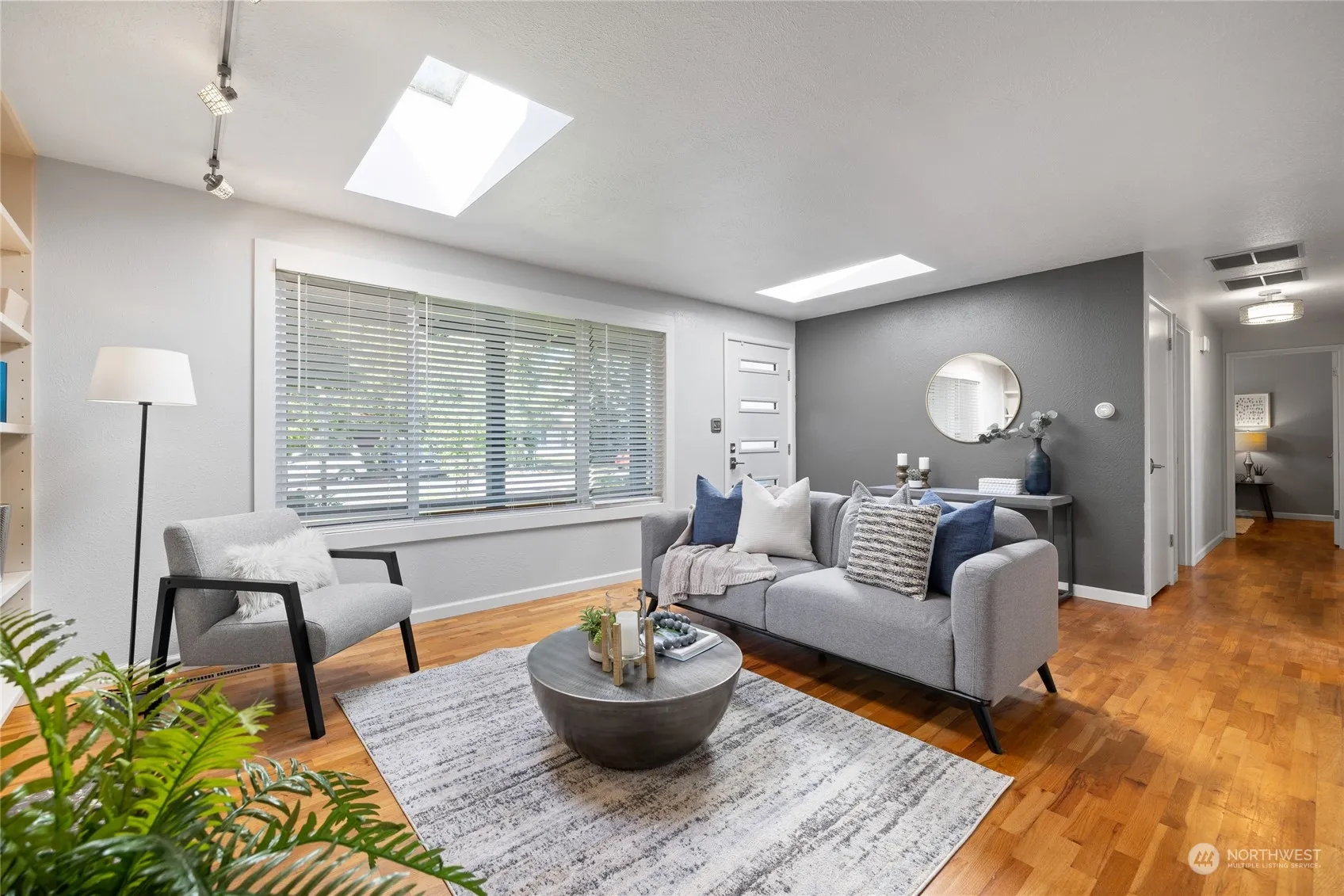 Welcome to this beautifully cared for Mid-century Modern home! An inviting front yard welcomes you with nothing to do but move in. New roof, sewer line, water heater, exterior & interior paint, & new carpet. Enjoy open and bright common living spaces & cozy up to the wood burning fireplace. 3 bedrooms and 2 bathrooms on the main level with living room, dining room, and huge family room with wrap-around windows. Another family room is downstairs. Step out into the fully fenced backyard and enjoy both decks. Beautiful & mature garden spaces bloom throughout the seasons. Enjoy the above ground pool on hot days. Bonus heated workshop/craft room. Home is close to amenities, farmers market, bus line, schools, parks, and restaurants. A must see!