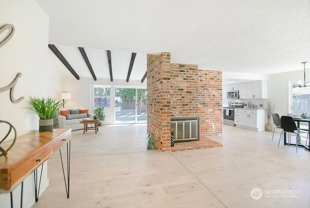 West Longview — 1 Level — LARGE Lot — 3 Bedroom / 2 Bathroom — Nearly 1500 Sqft — Living Room Vaulted w/ Open Beam & Fireplace — Updated Kitchen w/ Stainless Appliances — Dining Area — Primary Bedroom w/ Bathroom & Walk-in Closet plus Sliding Door out to Patio — Vinyl Windows — New Fixtures — New Flooring — New Interior & Exterior Paint — Attached Double Garage — Shed — Yard — 2 Patios — Garden Space — Covered Porch — Close to Town