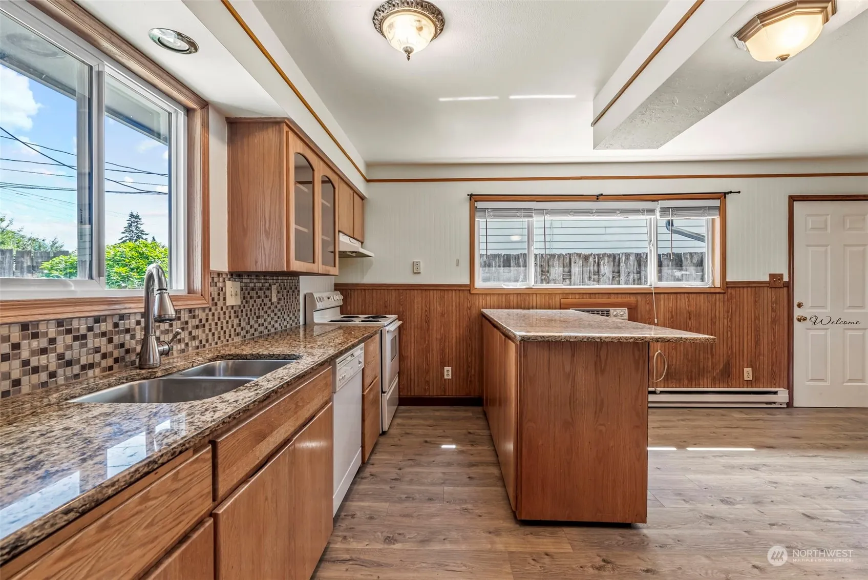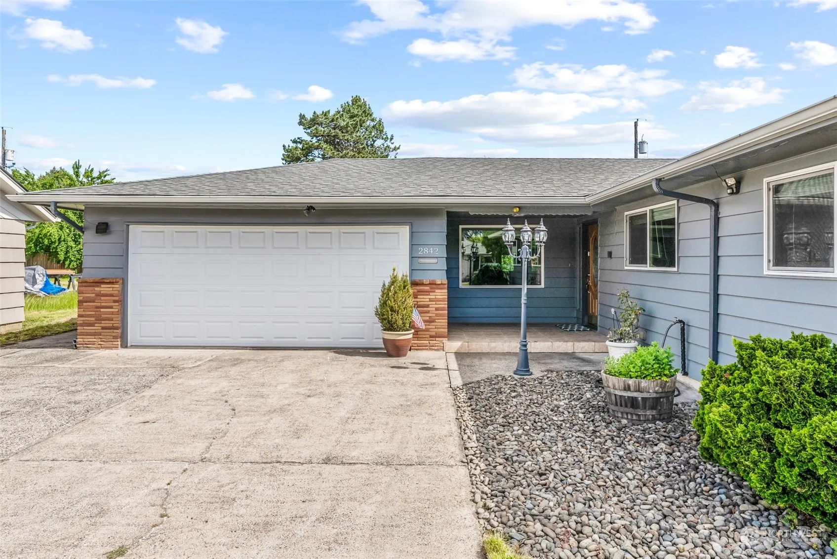 Come view this single story 3 bed 2 bath 1,960 sqft home in a desirable neighborhood. Home has many updates including newer flooring, vinyl windows, newer roof, updated kitchen w/granite counters, bathrooms and more! Home has 2 living rooms, a nice primary bed/bath, utility room w/sink, and large kitchen w/ movable island. Outside you will enjoy the large back covered patio and a fenced back yard along with a beautiful landscape and trees. This home has ample parking with an attached 2 car garage with workspace, and off street parking. Home is clean and move in ready!
