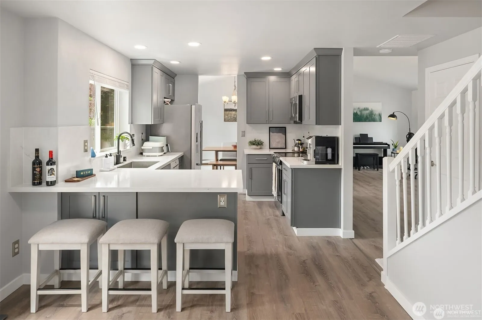 Beautifully maintained Belmont Woods home featuring soaring vaulted ceilings & bright, natural light thru-out. Fully-renovated Kitchen & Baths (2 full-length Showers upstairs + 1/2 bath on Main) w/ New quartz countertops, cabinets, paint, & floors. New Luxury Vinyl Plank flooring on the main level, elegant French doors open to a custom covered deck, perfect for year-round entertaining & relaxation. Spacious primary Bed includes a private Bath & WIC cabinets. Enjoy the benefits of 2019 windows, roof, Hardie Plank siding, & garage doors for peace of mind. Fully-fenced yard offers a sprinkler system, garden space & 3-car garage. Community park & playground nearby. Highly regarded Tahoma SD close to shopping, trails, & everyday conveniences.