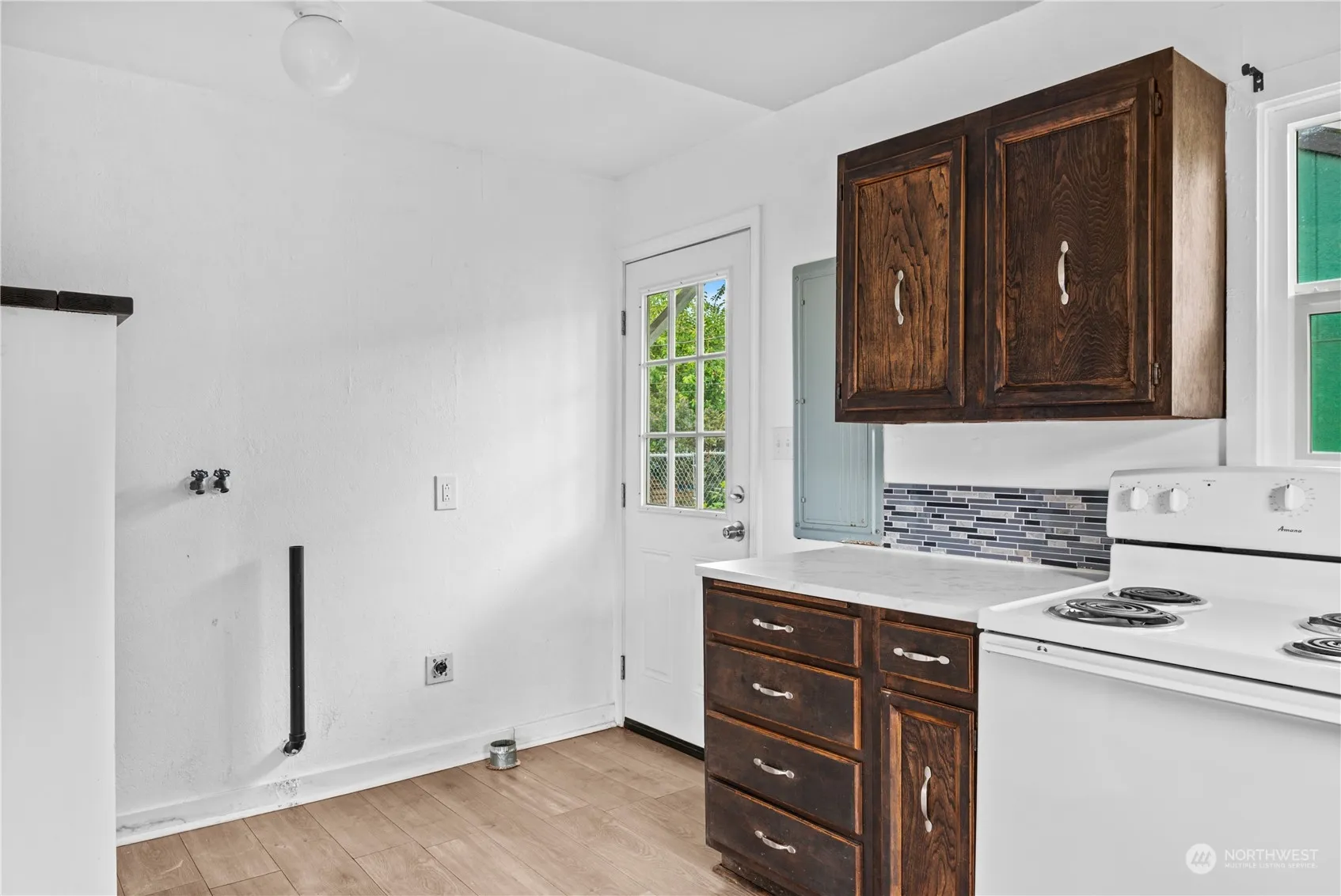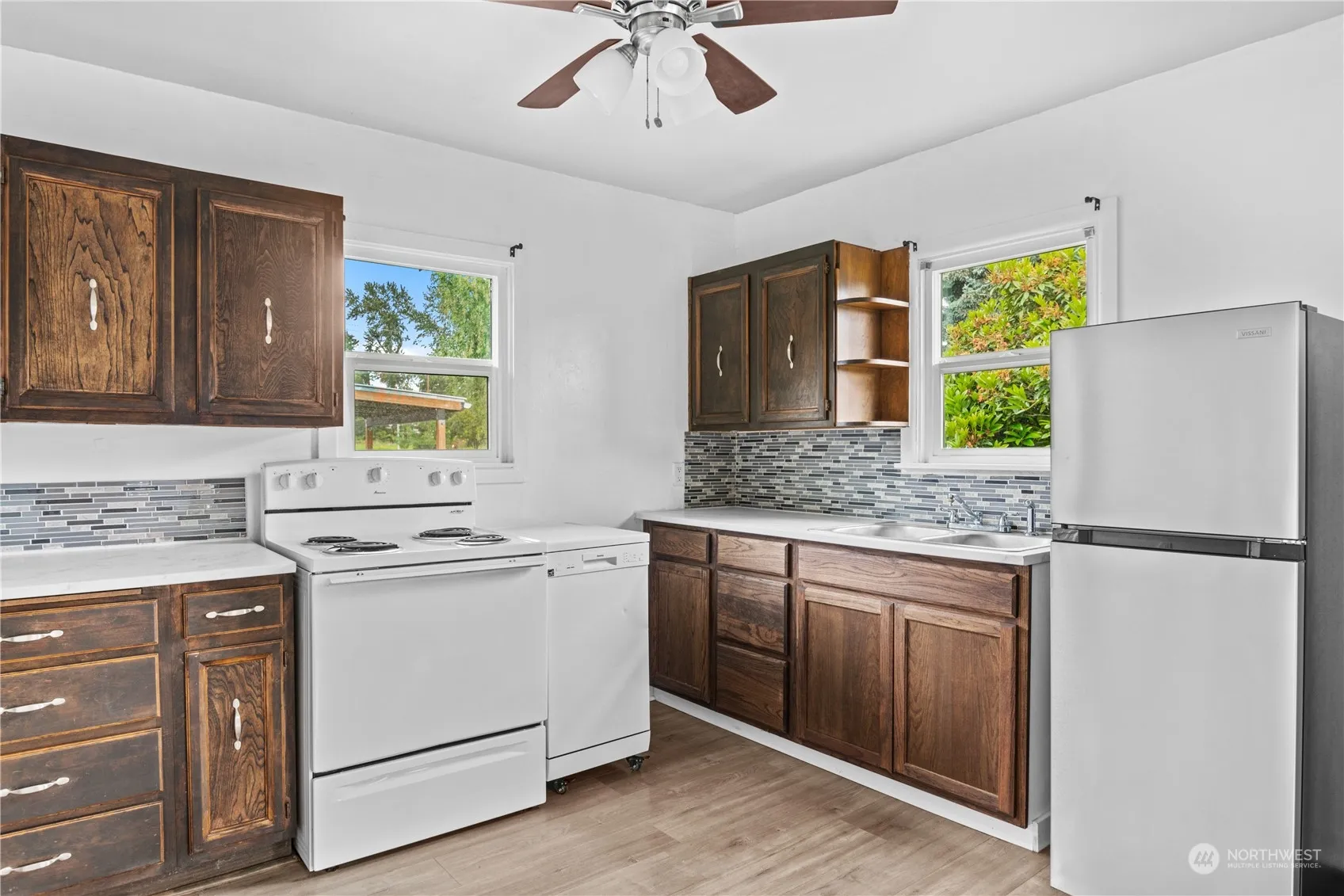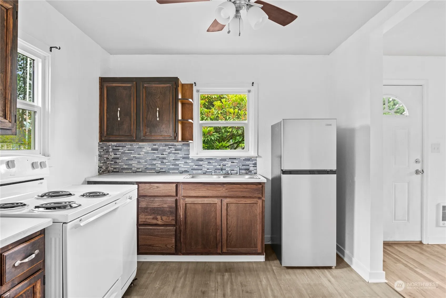 Move in ready! Remodeled two bedroom, one bath bungalow. New roof 2024, new bathroom, hardwood floors, vinyl windows, fresh paint, updated kitchen cabinets, ductless air conditioning, includes appliances refrigerator, stove and dishwasher. Fenced back yard with gated alley entrance, tool shed and concrete slab for garage. Excellent rental history.