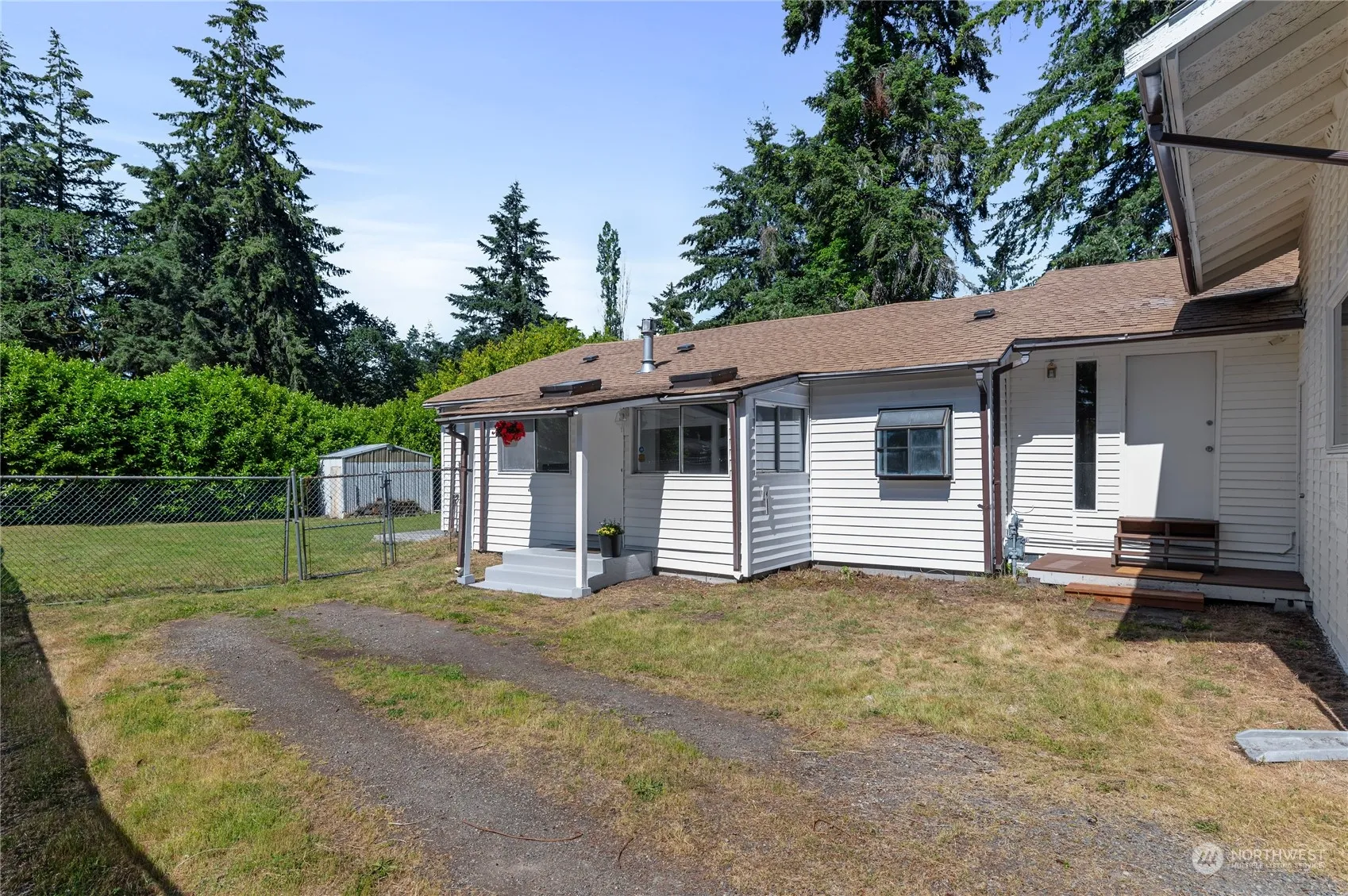Updated 1 level duplex has many usage options. 1st option is the larger back unit w/ fenced yard uses the garage & the 2nd huge middle bedroom, leaving the smaller 1 bed unit up front. The middle 2nd bedroom/bonus room w/ locking doors into each unit as well as exterior door could be attached to front unit or used all together as one 3 bed unit w/ a 2nd smaller kitchen for an ADU/multi-Generational setup. Both units have large patio/decks & brand new dishwashers, stoves, kitchen cabinets & kitchen sinks. New carpet in 2 bedrooms. New roof Feb 2020. Huge 420 sq ft garage/shop w/ 10′ door & exterior entrance could hold RV & be rented w/ either unit. Also parking for 6 vehicles. No HOA -Next to public park w/ playground & extra parking.