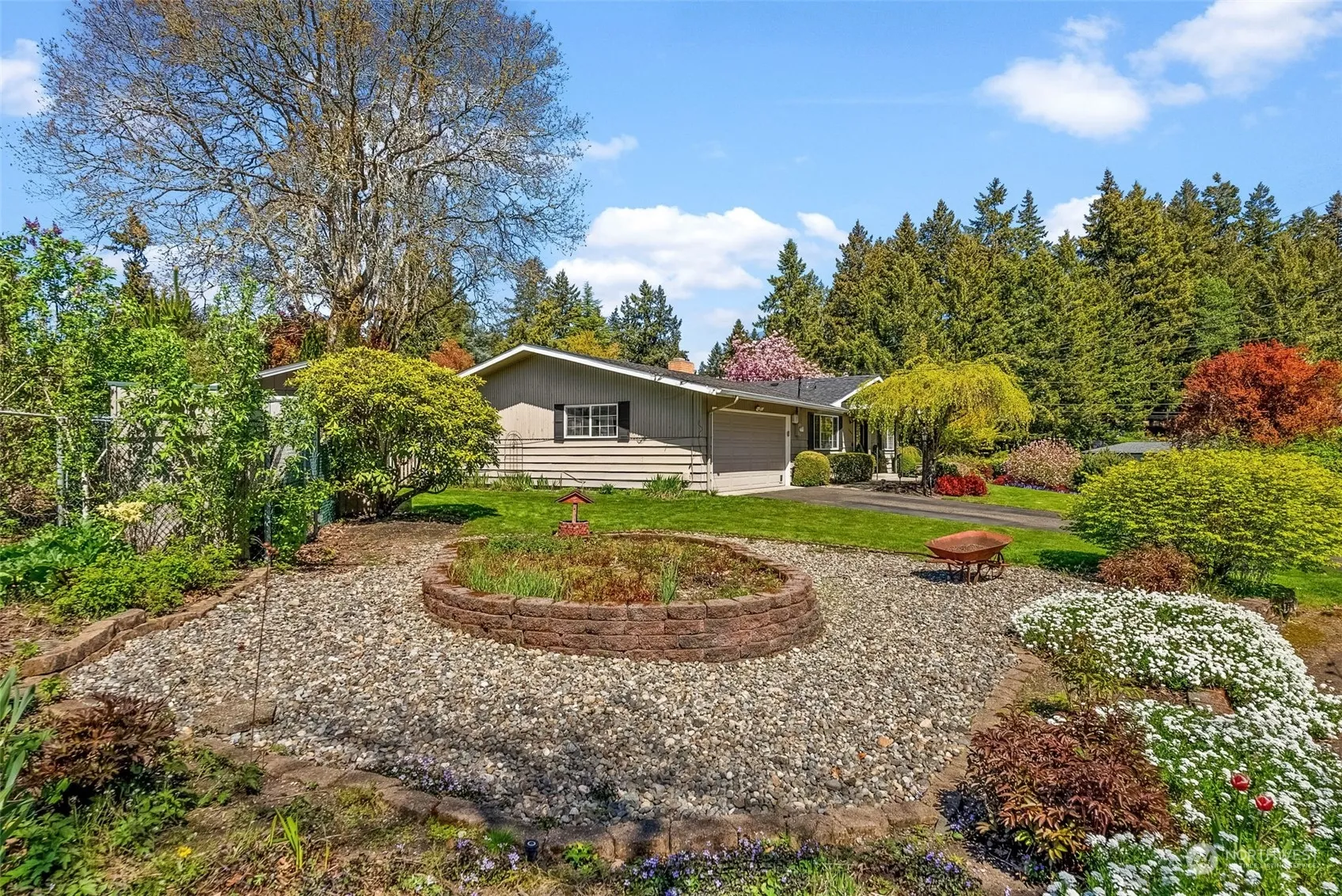 This charming single-story gem offers 3 spacious bedrooms, 2 baths, and nearly 1,800 sq ft of comfort. Enjoy the bright solarium with AC and the professionally landscaped backyard featuring a lovely water feature. The living room boasts a cozy fireplace and southern exposure. Nestled on a shy 10,000 sq ft level parcel with an apple tree, roses, blueberries, strawberries, and raspberries. With ample storage, a 2-car garage, updated roof, siding, furnace, fresh interior paint, and gorgeous hardwood flooring, along with meticulously maintained original alder closets and doors this home is move-in ready. NEW attic insulation/crawlspace vapor barrier. Located in a top-rated school district and close to all amenities. Make it yours today!
