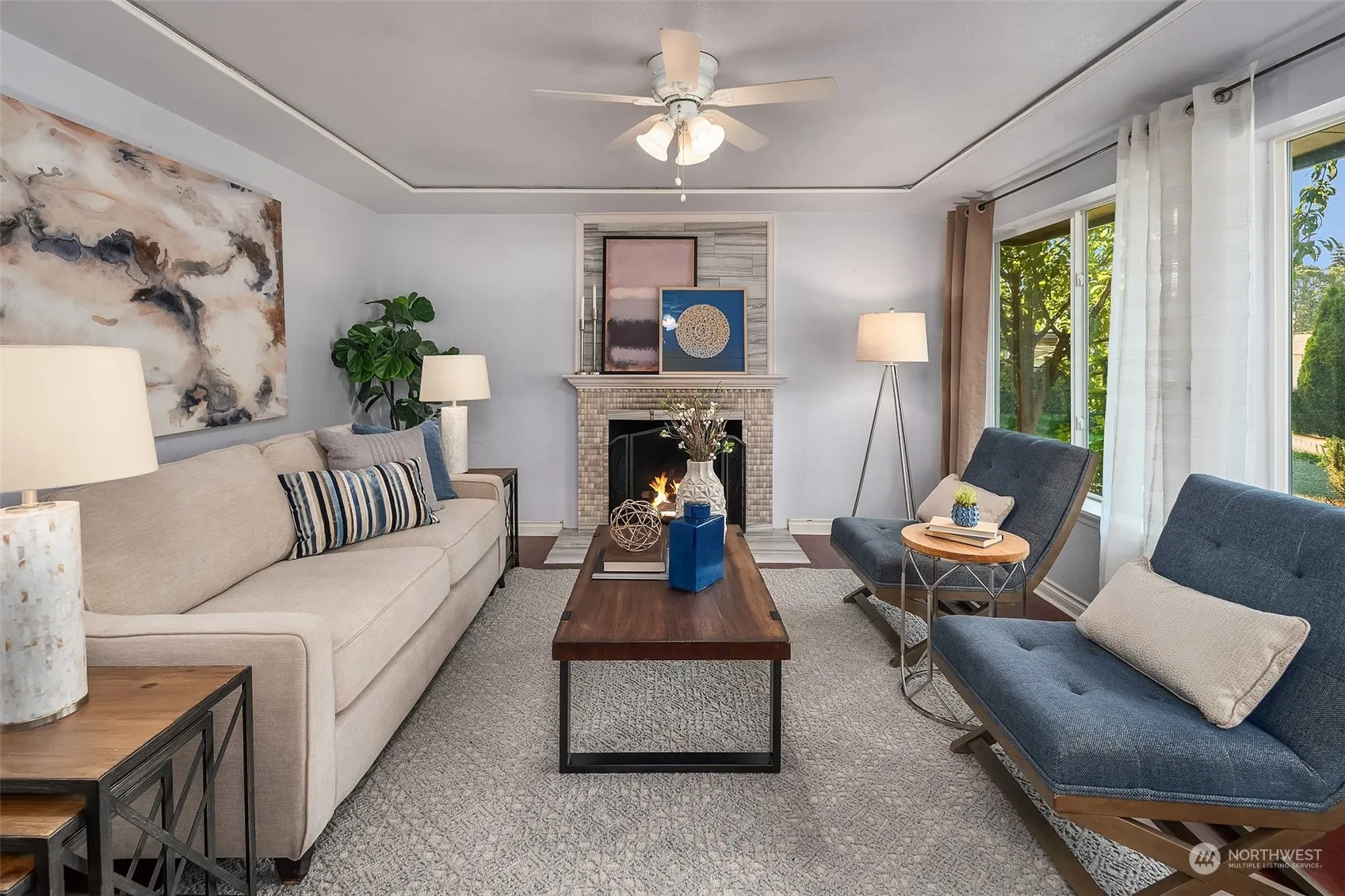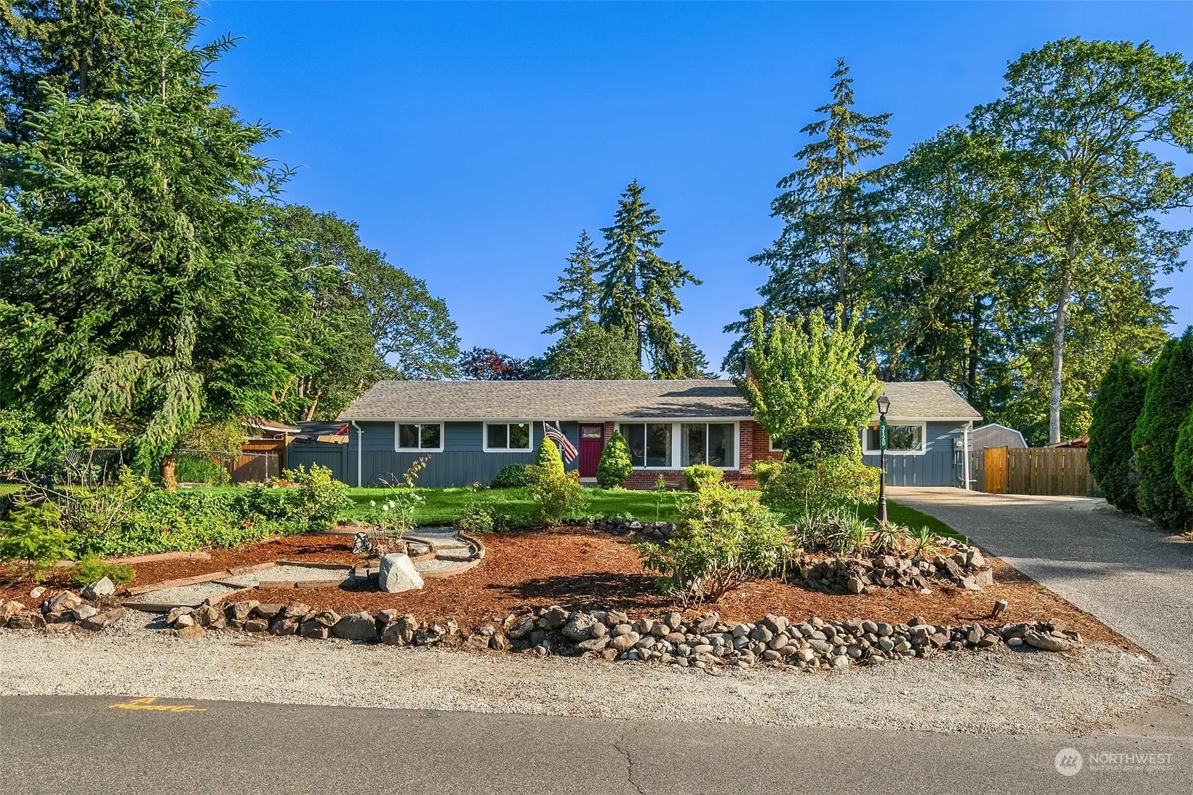 Discover this beautifully updated rambler, featuring a remodeled kitchen with modern cabinets, granite counters, stainless steel appliances, a pantry, and a new dishwasher. The inviting living room boasts a cozy fireplace and laminate floors, while the spacious master bedroom offers a private bath and walk-in closet. Entertain on the oversized patio overlooking a private backyard with a lighted gazebo, two outbuildings for extra storage, and a covered wood shed. Recent updates include fresh exterior paint and landscaping. Enjoy efficient forced air heating and double-pane windows. Located in a quiet neighborhood with close proximity to schools, freeways, and conveniences.