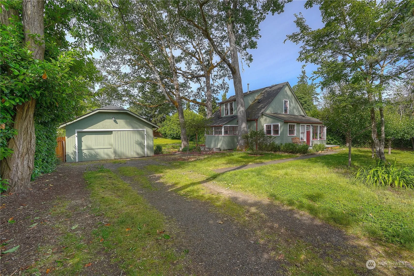 This private Farm-Style retreat on half of an acre boasts both charm & functionality w/ 2 bonus rooms! Step into a sunlit entryway framed by original windows, welcoming you into a home where old-world charm meets modern updates. Updated plumbing & electrical systems in 2017 ensure peace of mind, complemented by a new furnace installed in December 2022. The main level features hardwood floors, a cozy fireplace, and a convenient laundry room. Outside, the fully-fenced yard has garden beds, majestic Oak & fruit trees including apple, plum, and cherry. A large detached garage and driveway provide plenty of parking & storage options. Sellers will miss their daily strolls to the lake, kayaking adventures, and spotting local eagles.