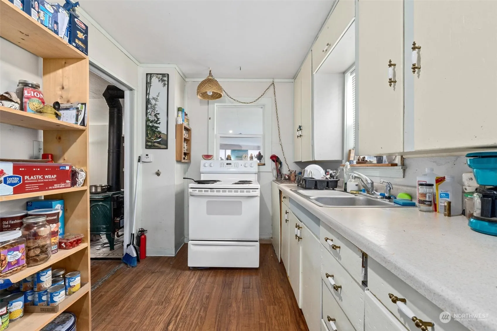 Affordable 2 bedroom 1 bath home in Kettle with screened in porch, large backyard, metal roof, free standing gas fireplace and lots of storage.