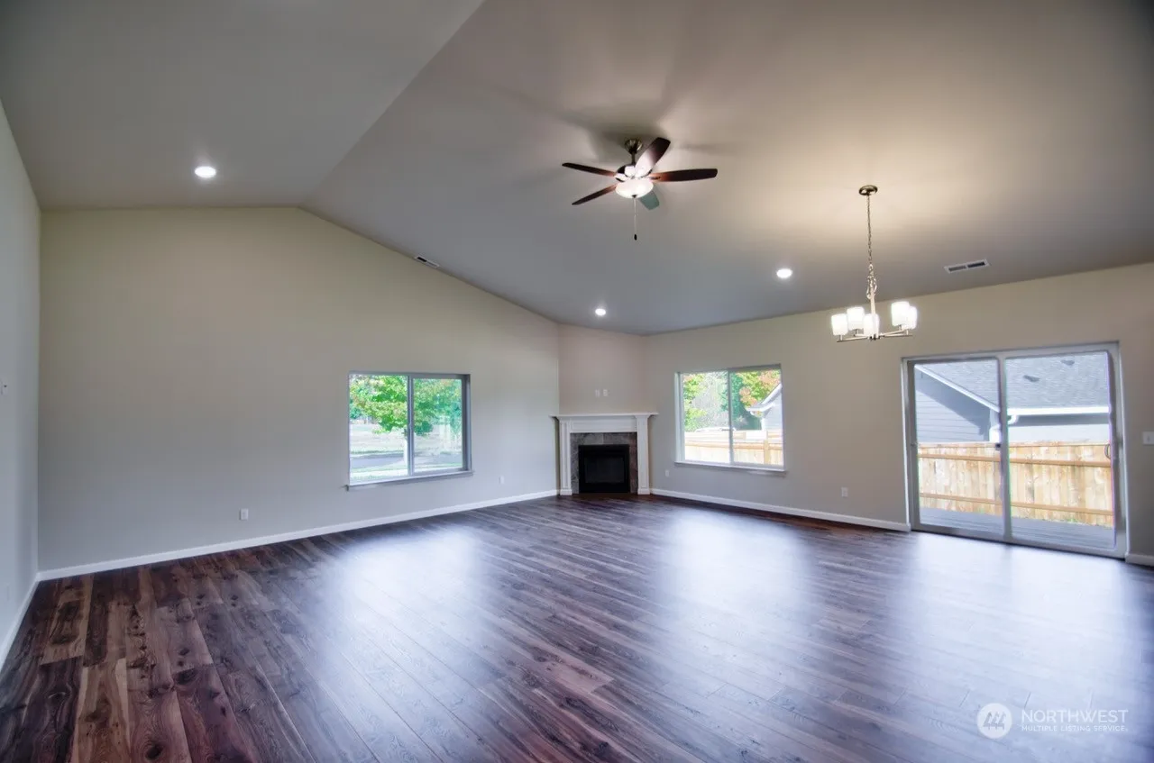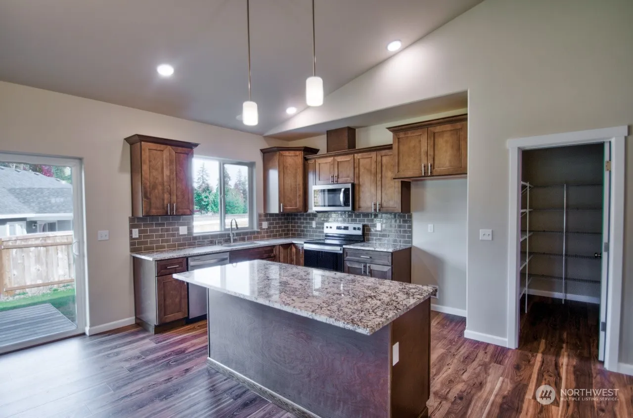 This spacious and well appointed rambler plan features 2004sf of living space with a large vaulted great room/kitchen with wonderful walk in pantry, split bedrooms and tons of storage. Primary bedroom features large W/I closet and 5pc bath. Standard features incl. granite in kitchen, laminate flooring throughout the living areas, entry, kitchen and hall, tile bath floors, forced air furnace with heat pump and large. Gated community for added privacy. No cost 1/0 rate buy down if buyer uses preferred lender James Nesbit/Guild Mortgage.