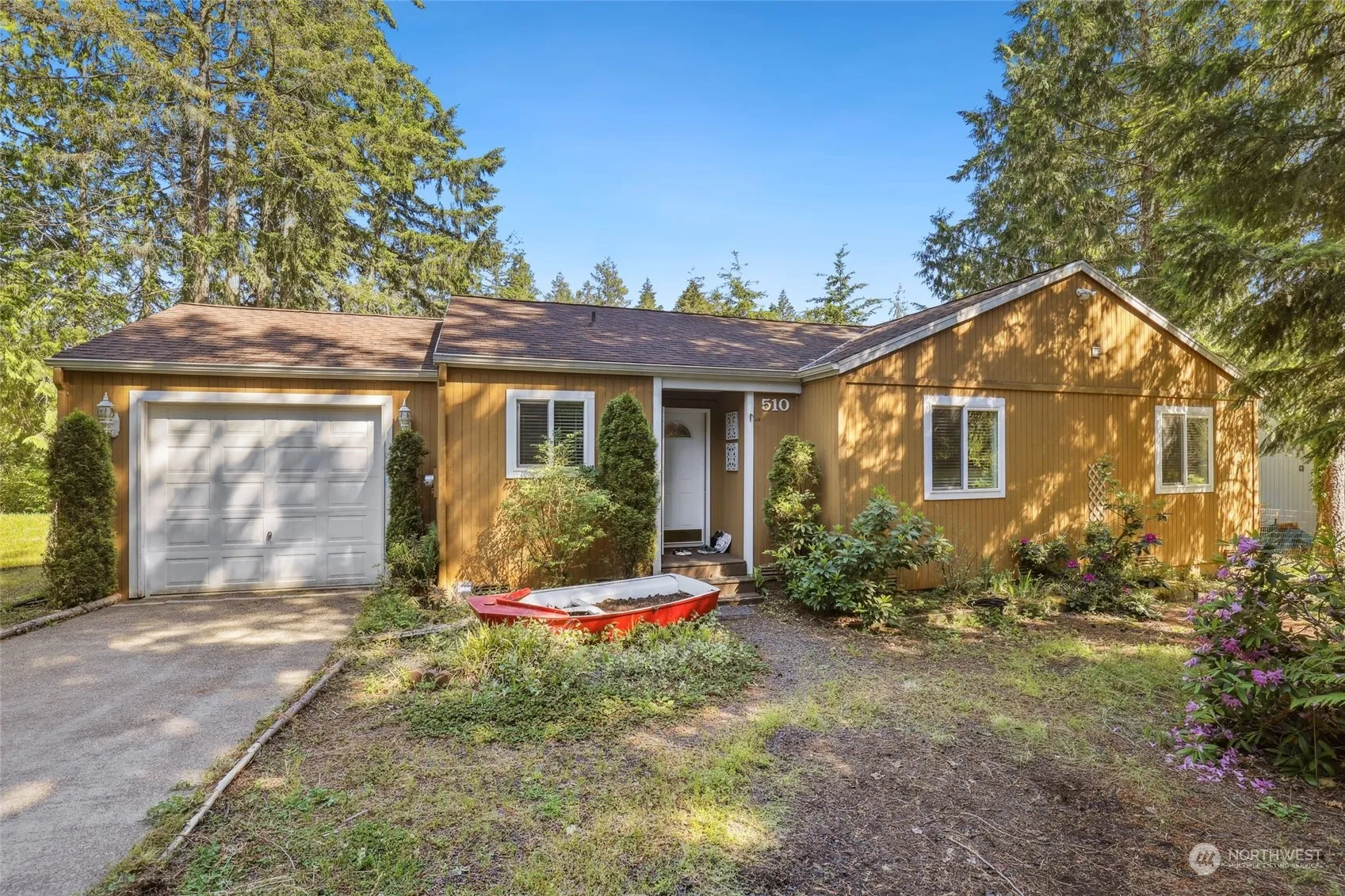Single level home w/128′ of private access to the water in Rustlewood! This 2 bed 2 bath home offers peace & tranquility & is situated on a quiet, wooded cul de sac lot. This house has vaulted ceilings, an open kitchen, dining & living room, nice sized laundry & mudd room & an extra room that is perfect for an office, den or guest room. Primary bedroom has a walk in closet & full ensuite, including a jettet tub for relaxation. Just in time for summer, this home has community ameniites that include a community beach, picnic area, basketball, volley ball & a perfect place to put your kayak or paddle board in the water. Move in ready home comes with all of the appliances. Don’t miss your chance to make this great little house your home!
