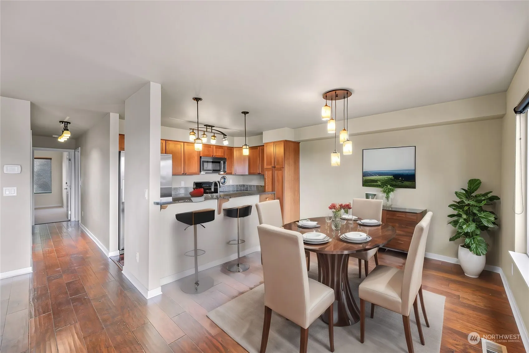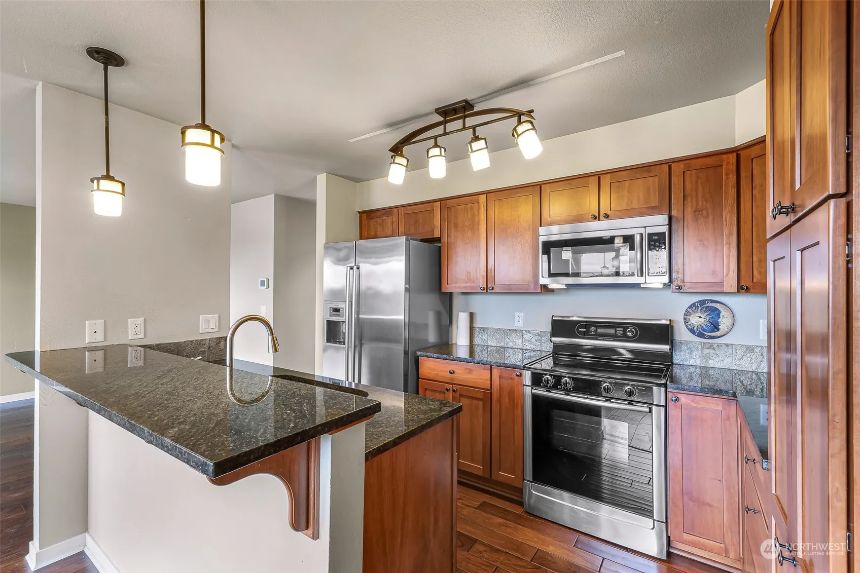 Discover an impeccably maintained condo w/breathtaking views of Mt. Baker & Padilla Bay. This one-level home features high-end finishes including HW floors & an updated kitchen boasting granite countertops, breakfast bar, SS appliances, & modern light fixtures. Primary features en-suite bath that dazzles w/a travertine-tiled floor-to-ceiling shower. Enjoy year-round comfort w/a heat pump. Benefit from an expansive covered terrace balcony, covered parking space w/storage, plus extra guest parking. Nestled in a tree-lined, meticulously maintained complex, this condo offers the perfect blend of elegance & convenience. HOA dues cover security gate, earthquake insurance, landscaping, exterior maintenance, snow removal, garbage, & water/sewer.