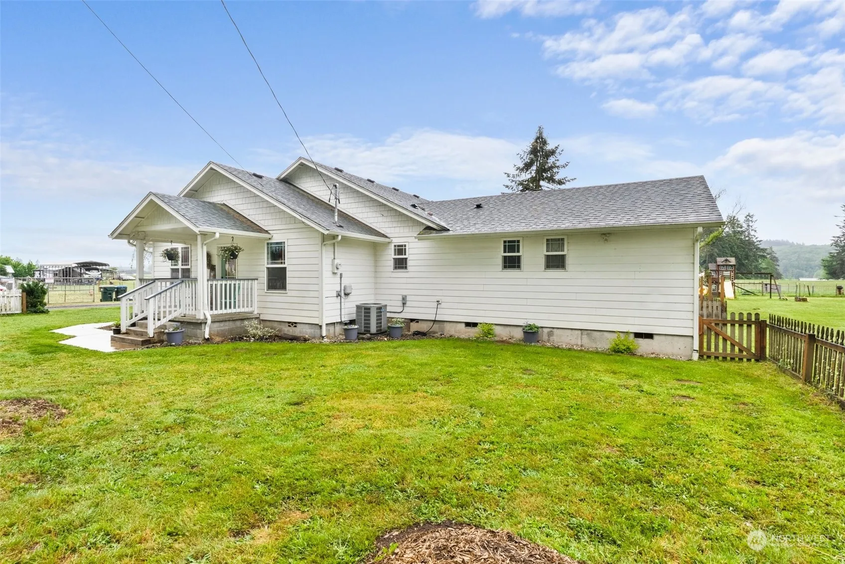 Hobby farm with the white picket fence! Remodeled 2 bed plus a den, 2 bath farmhouse on almost 7 acres of flat land. Home features hardwood floors, pine cabinets, heat pump, wired for a generator, and a bonus sunroom with a wood stove (extra sq ft). Detached 1 car garage, and a 2-car carport, plus a large 2 bay shop with power and a RV hookup. Property is fully fenced and gated, has a fenced garden area, garden shed, an orchard, chicken coop, and lean to for animals. Rear of the property has some marketable timber.
