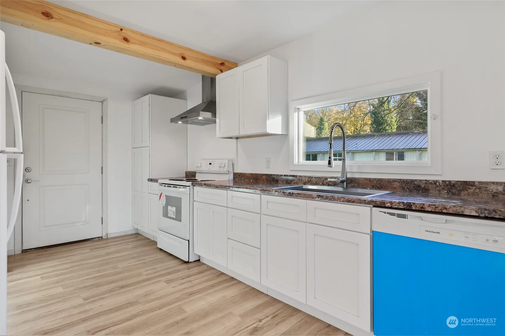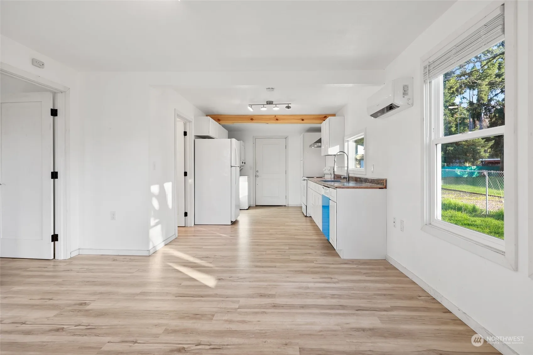 Modern 1-Story Urban Cottage! Down-to-studs remodel in 2022. Roof/windows/plumbing/septic/electrical & more! Comfy mini-split heating & A/C, wide-plank wood laminate floors under wood beam ceiling. Cute covered front porch & keyless entry opens to great room & bright kitchen w/Shaker cabinets, tall pantry, deep single basin sink with pull down faucet & stacked W/D laundry area near back door. Relaxing bedroom suite w/ceiling fan & walk-in closet attached to 2-sink-vanity bath. Big .23 ac corner lot zoned commercial for biz potential w/detached 2-car garage/shop w/barn-style door, carport & RV/boat parking. Strolling distance to grocer, pharmacy, eateries, coffee & park. Just 7 mins to I-5 or casino, & 20 mins to State offices in Tumwater!