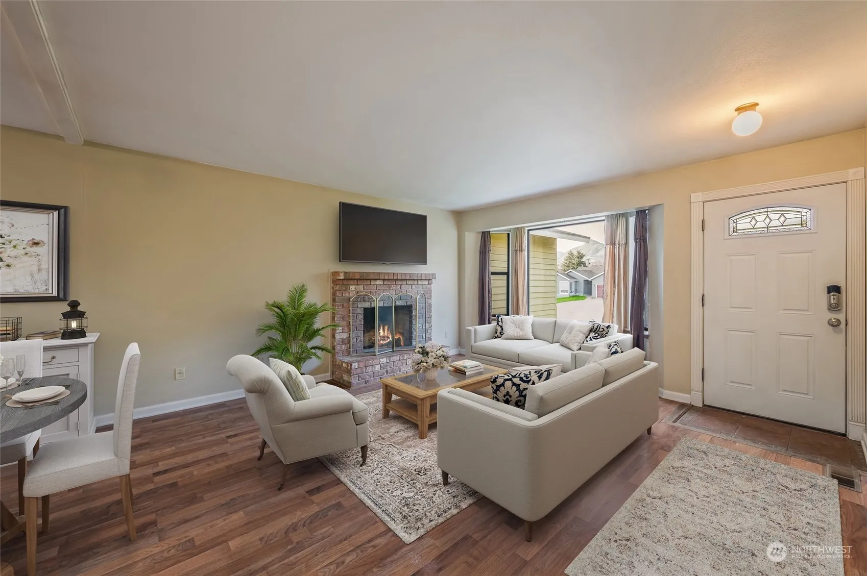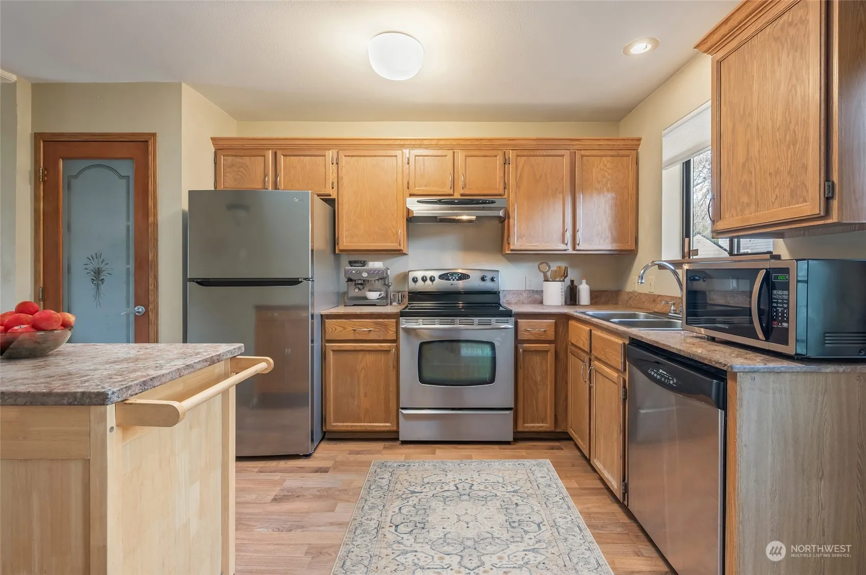 Welcome to this charming home, nestled in the heart of Wenatchee at the end of a quiet cul-de-sac just minutes from downtown; offering a perfect blend of privacy & convenience. Open concept floor plan seamlessly flows from the kitchen to living room; boasting a brick fireplace & incredible Saddle Rock views. Kitchen features a spacious pantry & stainless steel appliances, including new dishwasher & refrigerator. Office/den adjacent to kitchen with built-in desk & plenty of storage. Ensuite primary bedroom highlighted by walk-in closet & jetted tub. Outside you’ll find a sprinkler system, fenced backyard with large patio, & 4×8 shed. Extra deep garage and 20’ RV or boat parking. New blinds, carpet, & AC/furnace/water heater just serviced!