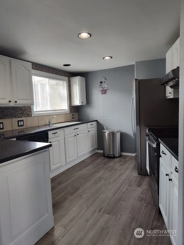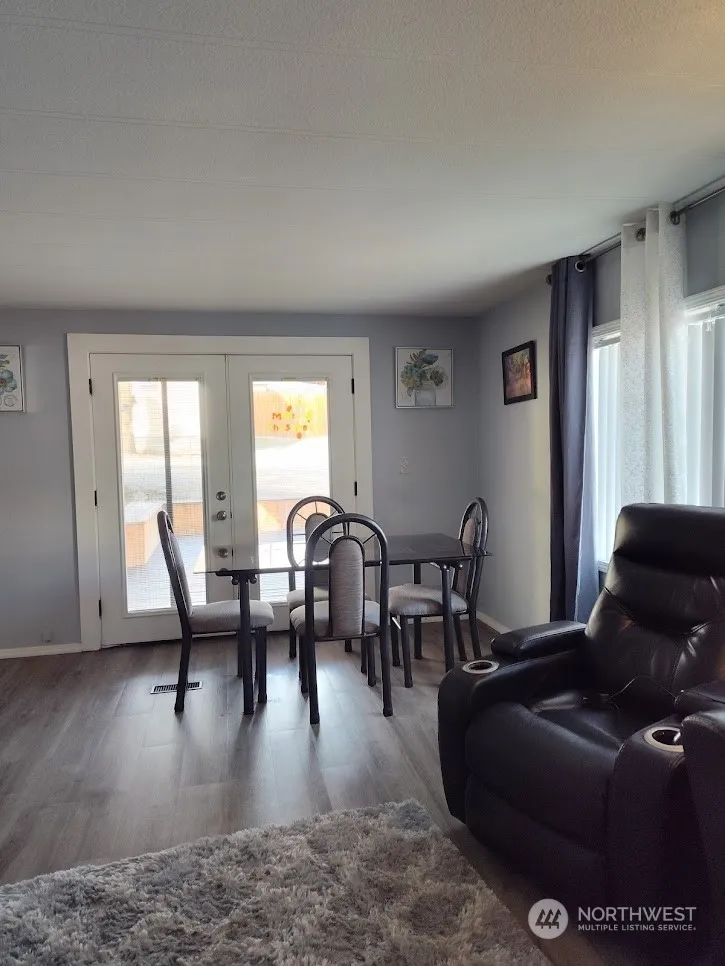 Recently updated doublewide manufactured home on its own land, spacious, lots of room for gatherings, bonus third room used as an office, access to the back alley for more parking. A must see!