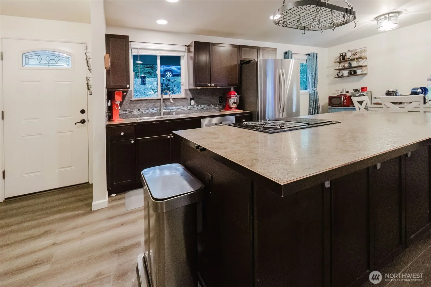 Craving space, charm, & location that fits your whole life? Just minutes from Keyport, Bangor Base, Silverdale, & Poulsbo, this sweet single-level home sits on nearly ½ acre—ready for gardens, play, chickens, or peaceful evenings under the stars. Inside you’ll find 3 beds, 2 baths, wide-plank laminate floors, a cozy wood-burning insert, & a mini split for year-round comfort. The kitchen is made for connection, featuring an oversized island & easy flow into the open living space. The primary suite offers double sinks, a jetted tub, & generous natural light. Step outside through French doors to a brand new custom deck—perfect for morning coffee, sunset dinners, or fireside chats. Single family home, in Poulsbo and under value, wow—don’t wait!