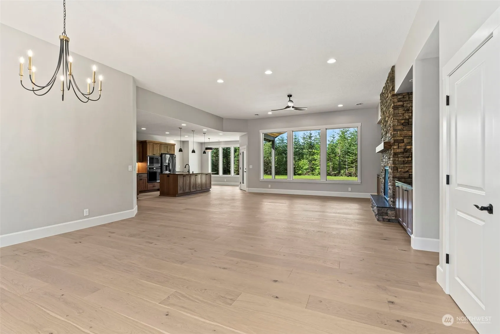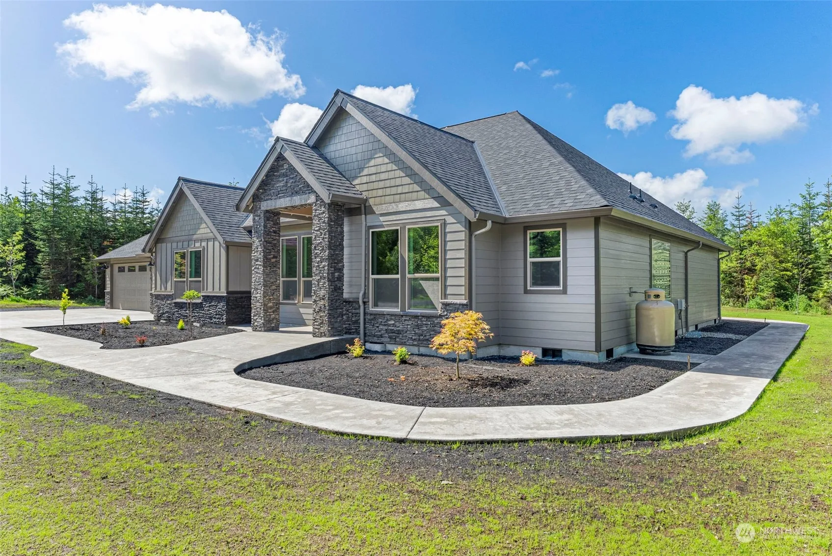 Stunning custom new construction located on pristine flat 5+/- Acres with mature landscaping. This home is off the end of a cul de sac and delivers everything you would expect in a custom home from an open floor plan with large master suite to an incredible covered patio off the back of the home with tons of seclusion. No detail was missed on this home, from the moment you walk in the front door you feel the luxury that this home carries with it. An open layout that flows from the kitchen to the living area with extra tall ceilings and a split floor plan offering everything you need.