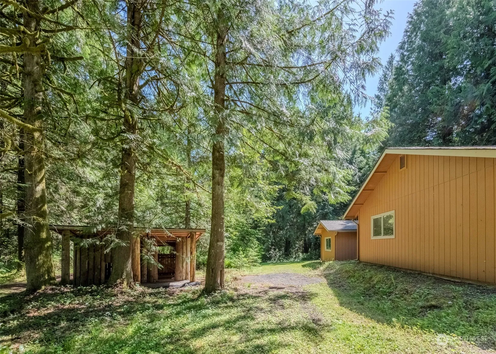 Your private getaway awaits! This beautiful home with covered wrap around porch sits at the end of a dead-end paved road surrounded by mature cedar and fir trees. New energy efficient windows, Trane heat pump with AC, newer roof, and a propane free standing stove are just a few of the upgrades. Extensive well-groomed trail system throughout the almost 10-acre property is perfect for multiple outdoor activities. Multiple outbuildings include a 900 sq ft 2 car garage/shop with studio apt with electric heat and water. Backyard has a 320 sq ft gazebo with electrical, party lights, and a wood deck. Large chicken coop and raised beds garden area with irrigation system lets you start your own hobby farm. Ask your agent for list of all upgrades!!