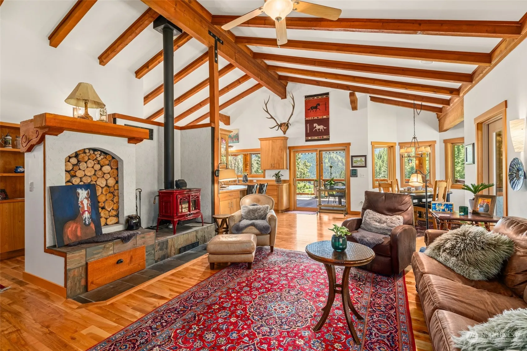 Outstanding 2900 sq ft home with beautiful stucco and log and timber accents. Very tastefully built. Alot of love and lots of work. It is hard to describe everything that makes this home and 4800 sq ft Barn/Shop on 35.5 acres so incredible. The pictures with verbiage should tell you what I can’t in words. It is nestled in a valley between pines trees on one side and rolling hills on the other and in the middle is this beautiful valley with green meadows fenced and cross fenced. Mostly irrigated with permanent set sprinklers with irrigation from a well. All kinds of beautiful trees and shrubs align the driveway coming onto the property. 2 domestic wells.