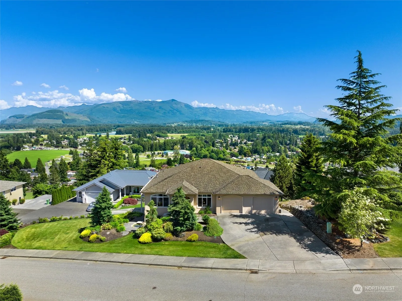 { COVETED TINAS COMA Neighborhood } Breathtaking panoramic views of the Majestic Cascade Mountains & Skagit River. As you step inside, an abundance of natural light flows through the rooms. The kitchen, featuring granite countertops, overlooks the space, creating a seamless area for cooking & casual gatherings w/ the grand views from all windows // Retreat to the luxurious owner’s suite, complete w/walk-in closet & spa-like bath // The expansive basement is a car enthusiast’s dream, providing parking for up to 5 add’ vehicles/toys & offers plenty of storage space for all your needs w/ it’s own separate driveway & could be easily converted to a finished basement // Outside, enjoy the beautiful Trex like deck to soak in the spectacular views!