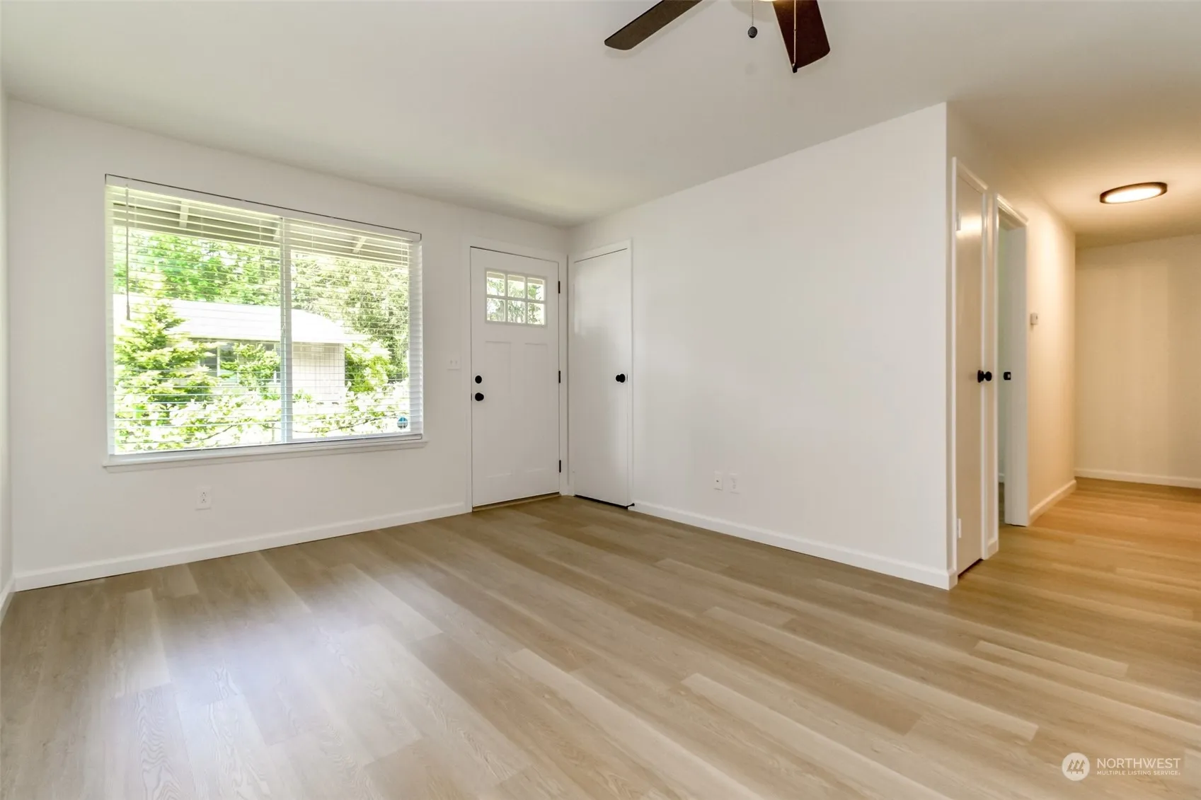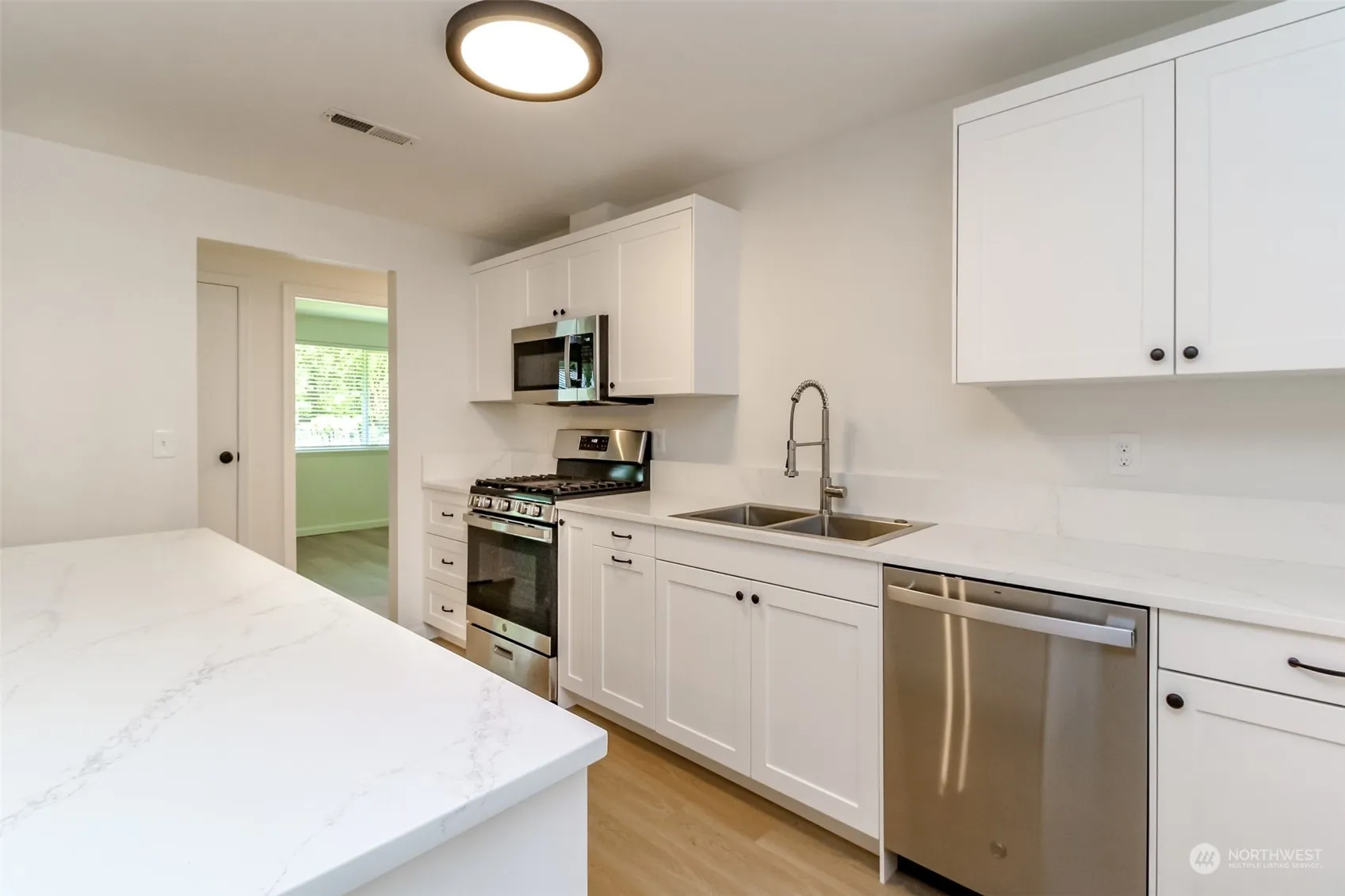 Fully remodeled turn-key rambler on prime corner lot! Enjoy the oversized private & fully fenced yard w/ patio & storage shed. This fresh remodeled home boasts all-new hardwoods, new plumbing, new hot water tank, new paint, and a brand-new kitchen featuring shaker cabinets, slab counters & stainless appliances+ newer comp roof! Enjoy 3 bedrooms, 1.5 baths, plus a bonus room with access to backyard & laundry. Attached garage offers ample storage, while the back patio enveloped by mature trees provides a serene escape. Your dream home awaits!