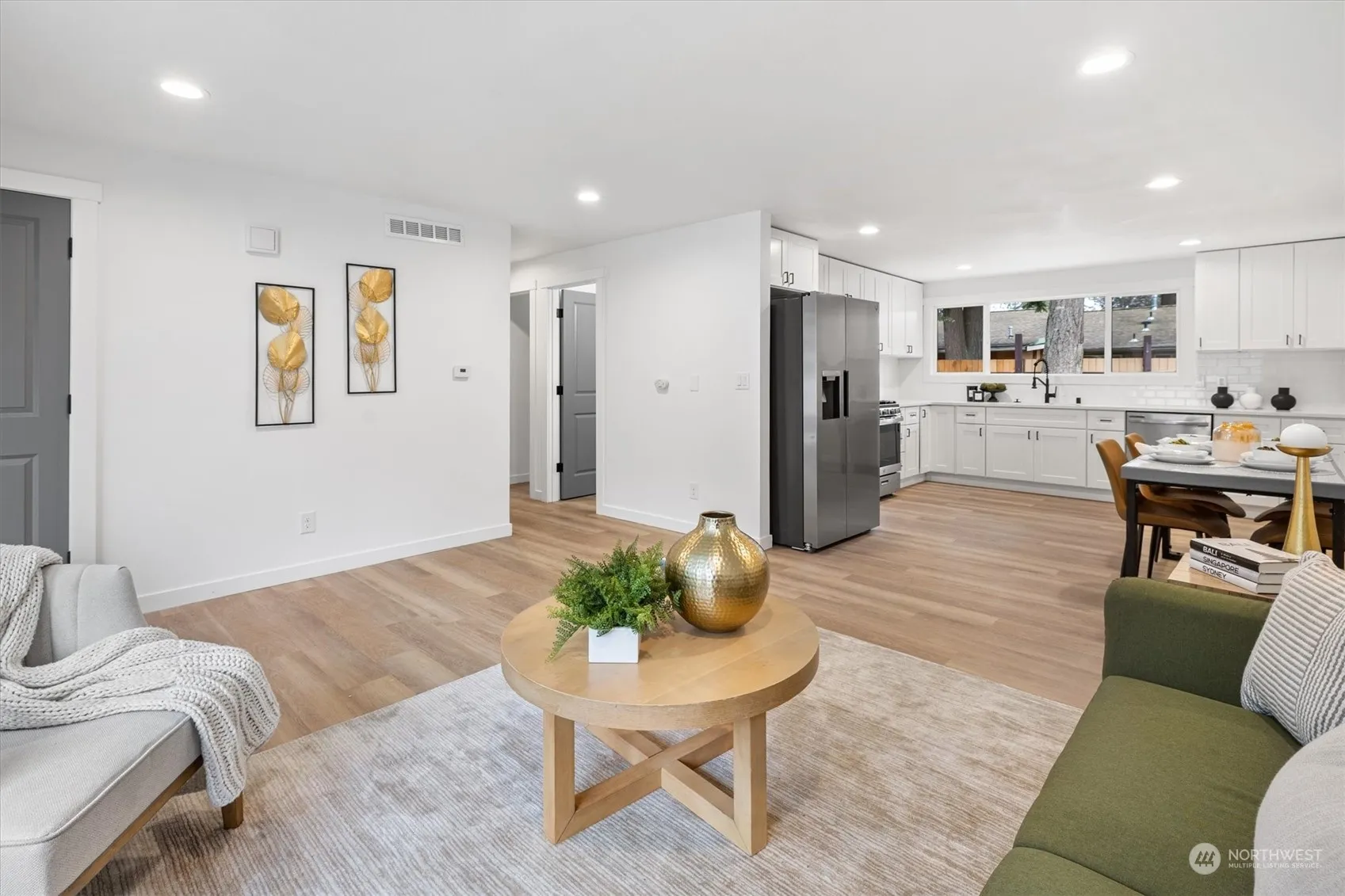 Welcome to desirable One Level living in Covington! This tastefully updated rambler on a dead-end street features a new roof, fresh exterior paint, and new landscaping creating welcoming curb appeal. Enjoy open concept living & a reimagined kitchen boasting timeless white cabinetry, stainless appliances, & crisp subway tile backsplash. Host gatherings in the luminous living room & entertain seamlessly via slider to the patio & deck as you bbq. Chic full bath includes a large vanity with ample storage & attractive tile detail. Primary bedroom offers a private half bath. Savor your summer evenings on the deck or gathered around the fire pit roasting s’mores in the fenced backyard. Fully finished 2-car garage provides ample parking + storage.
