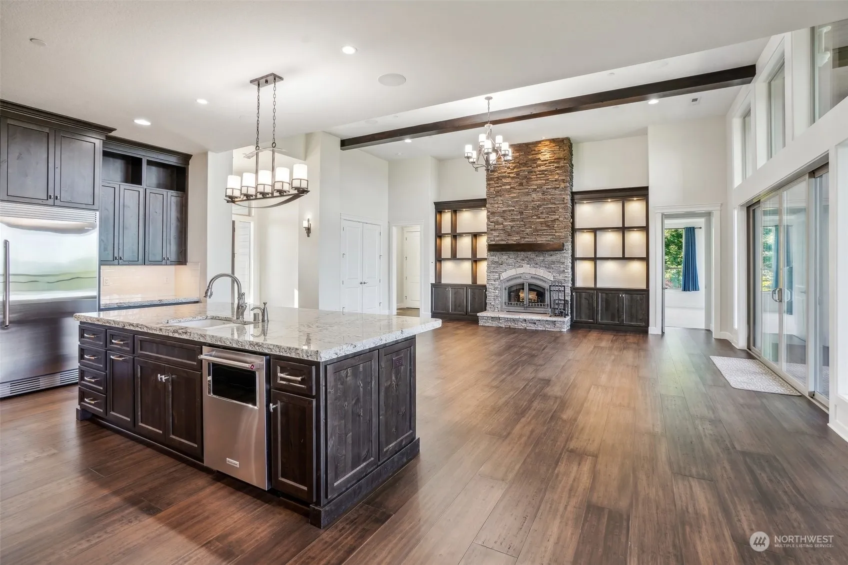 This luxury home exemplifies exceptional quality & meticulous attention to detail. Panoramic vistas of mountains, rivers, & sprawling landscapes, visible through expansive picture windows in the open-concept kitchen, living, dining area, media room, & bedroom. Inside, the home features 9″ wide bamboo plank flooring, natural edge granite countertops, oversized built-in refrigerator, & commercial-grade gas stove. Two secondary suites, an office, an oversized laundry room, & a beautifully appointed pantry. The 600 sq. ft. covered deck is perfect for al fresco dining. Fully insulated interior walls, heated bathroom floors, & ceiling heights from 10′-14′ feet. This property’s beauty, attention to detail, and efficiency will not disappoint.