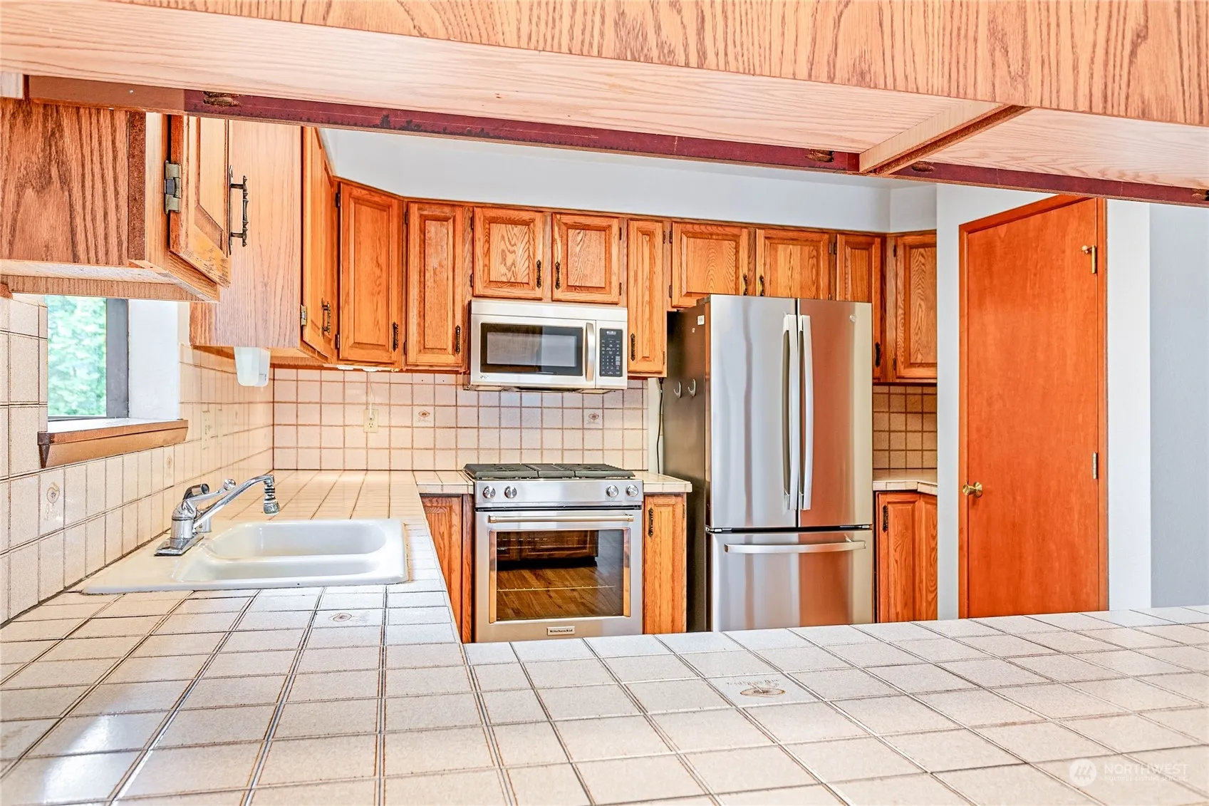Welcome to your charming one-level home bathed in natural light! With 1740 SF of living space, this delightful home boasts 3 bedrooms, ensuring ample space. Kitchen features stainless steel appliances & overlooks the backyard. Efficient floor plan with spacious living room & wood-burning fireplace in the dining/den space off the kitchen. Hardwood floors in the kitchen & dining/den add warmth & character to the space. This home offers additional parking along with garage that provides extra space, ideal for a small workspace or storage. Step outside to the fenced backyard complete with a lovely back deck, perfect for outdoor entertaining or simply enjoying the sunshine. Great location, close to schools, parks, shopping & more.