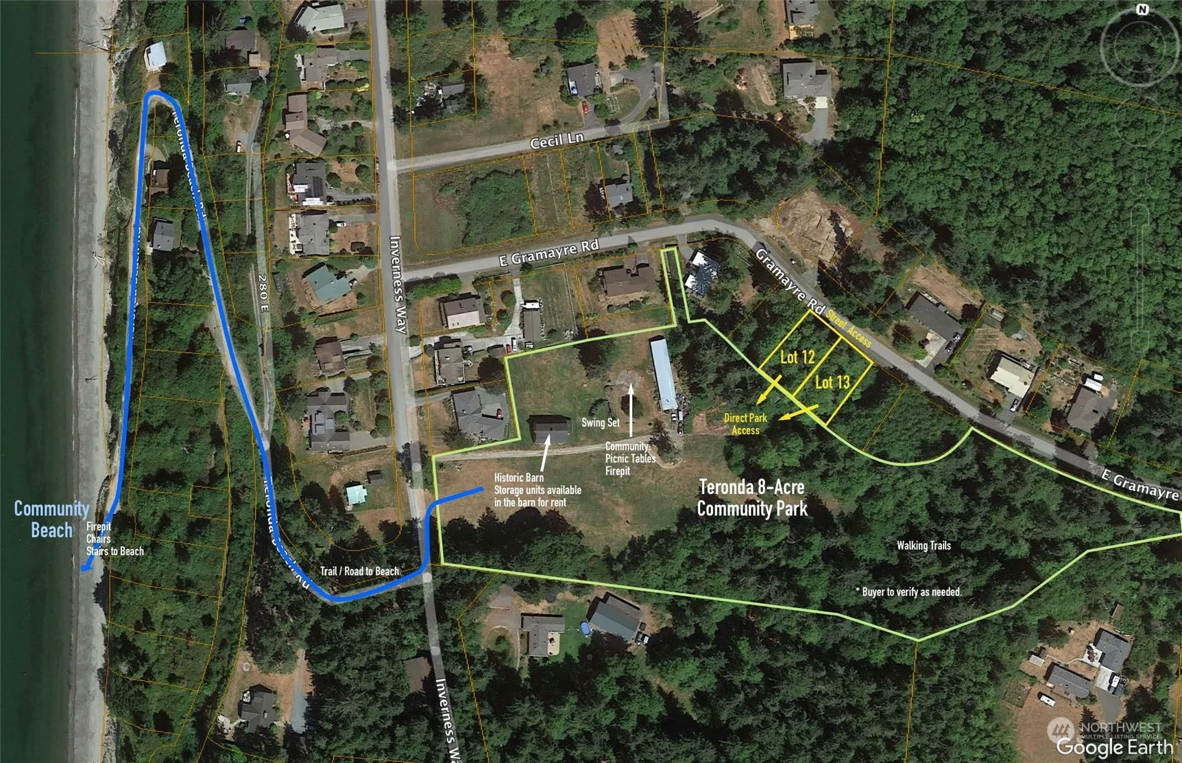 West-facing view property – Build your island getaway and wake up to beautiful views of Admiralty Inlet, The Straits of Juan de Fuca, and the Olympic Mountains. Watch magnificent sunsets from your own private oasis or stroll through the 8-acre community park down to the private beach. Enjoy the community fire pit, swing set and picnic areas. This property is situated with sunny southern and western exposures. Minutes to beaches, golf, trails, shops, wineries, restaurants, and the ferry. The site is ready for your custom home and includes a water certificate, power, an approved 2-bedroom septic and all with limited HOA restrictions. Lot 13 is also available to be sold individually or in a combined sale.