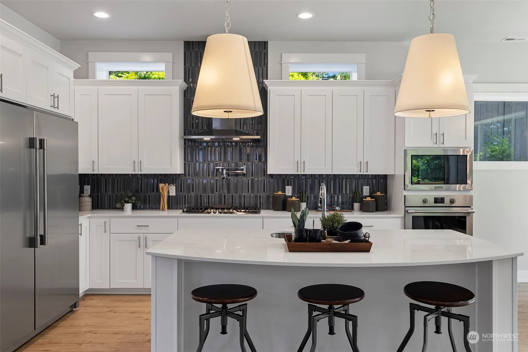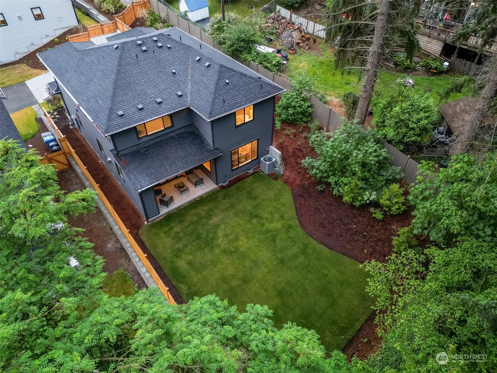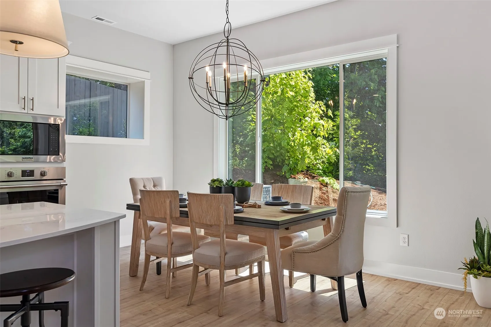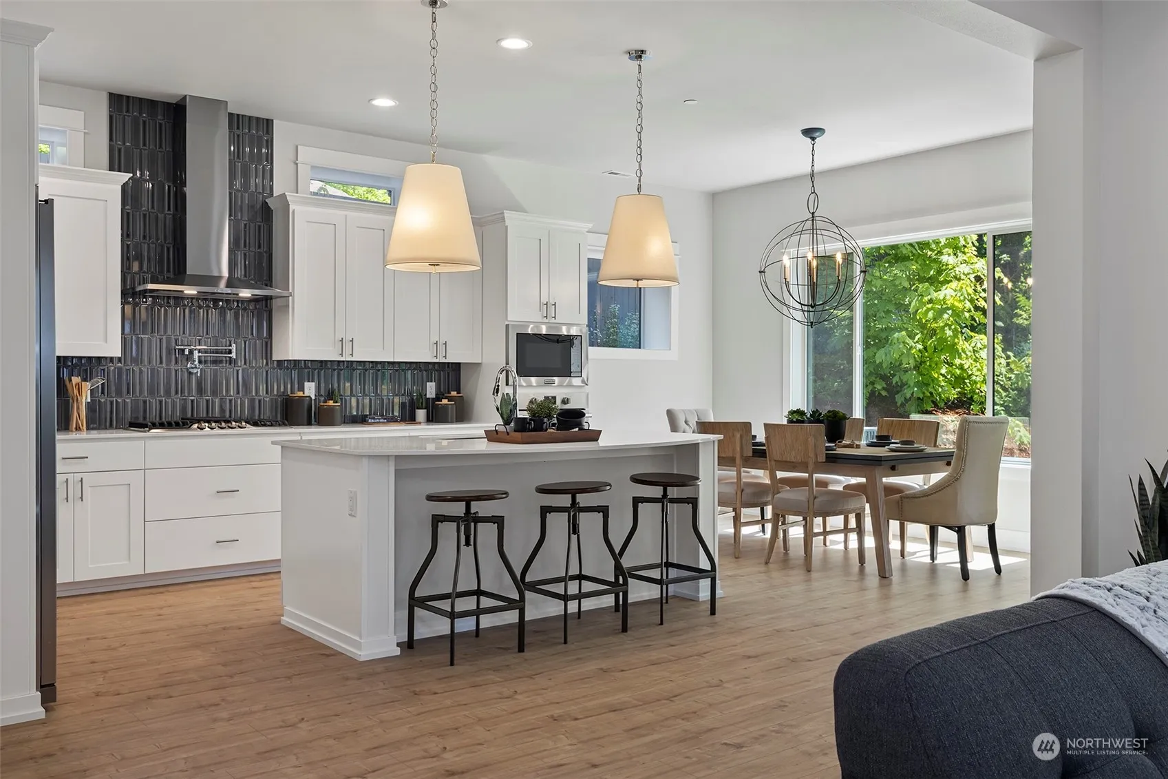 MOVE IN READY Luxury new home by Azure homes NW packed with all the extras! Kitchen boasts a full tile backsplash, transom windows, side by side fridge, gas stove w/pot filler & walk in pantry. The adjacent dining area offers expansive windows w/serene greenbelt views. Great room features tile surround gas fireplace & custom cabinets. Double slider to covered outdoor patio with liner gas fireplace and ample privacy. Open railing to upstairs you’ll find 3 large bedrooms, each w/ walk-in closet. Secondary bath includes quartz countertops, dual sinks, tile flooring & tile shower/tub combo. Primary suite features a spa like 5-piece bath w/ freestanding tub, frameless glass shower, dual vanities, & walk-in closet. Fully landscaped, AC & no HOA.