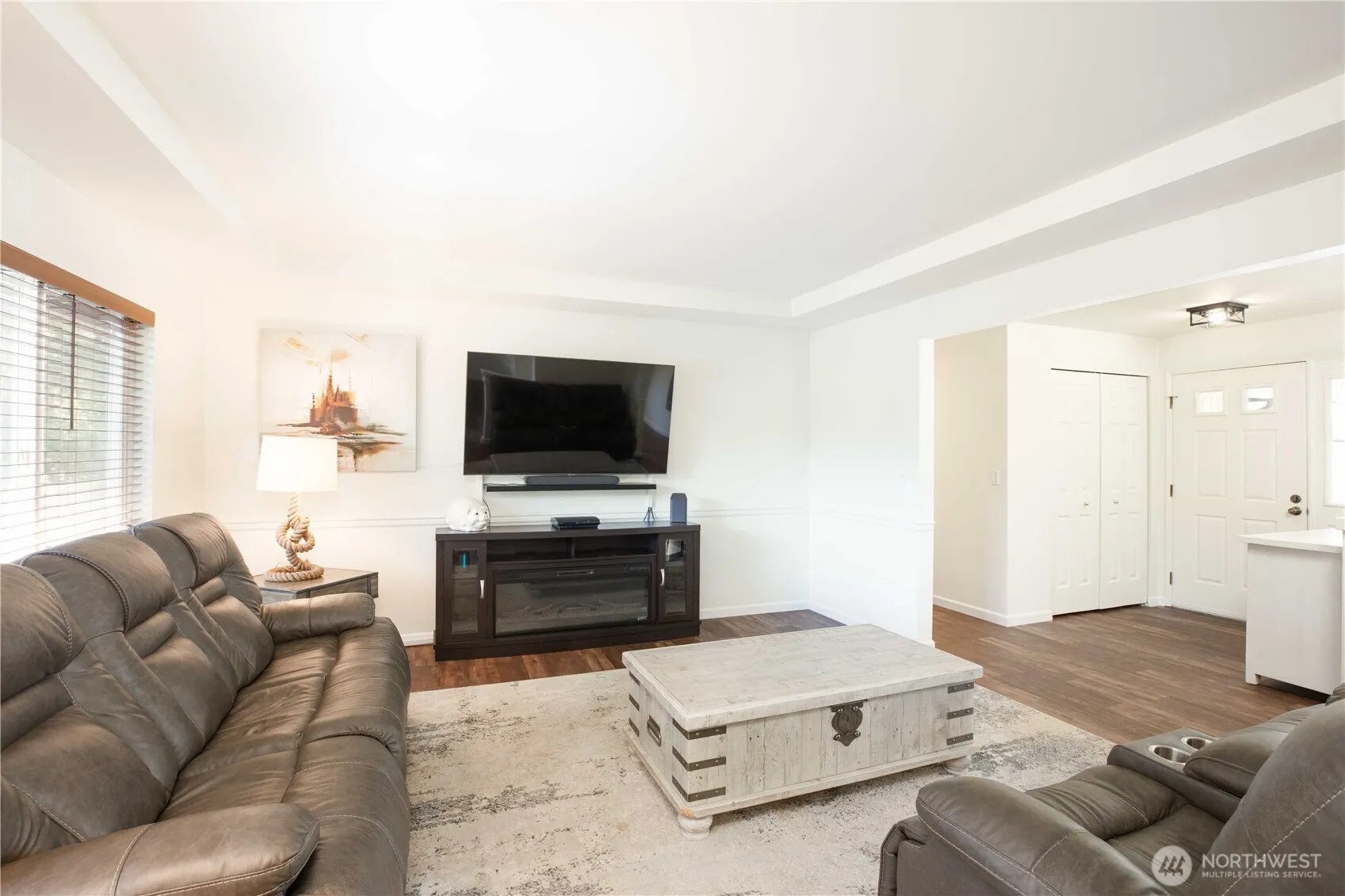 Near Everything, Yet Quietly Tucked Away. Come home to comfort in this inviting Poulsbo home, perfectly located near Silverdale, Bangor, ferries, and highway access. The main-level primary suite offers easy living, while downstairs provides added flexibility with two bedrooms, a full bath, and a second living space. New vinyl plank flooring brings warmth and cohesion throughout. A fully fenced, tree-lined yard with a fire pit invites relaxation or entertaining – plus convenient pet access from both levels. Enjoy distinct spaces for dining, cooking, and lounging, while still feeling connected. Tucked on a quiet cul-de-sac, this is where life slows down just enough.
