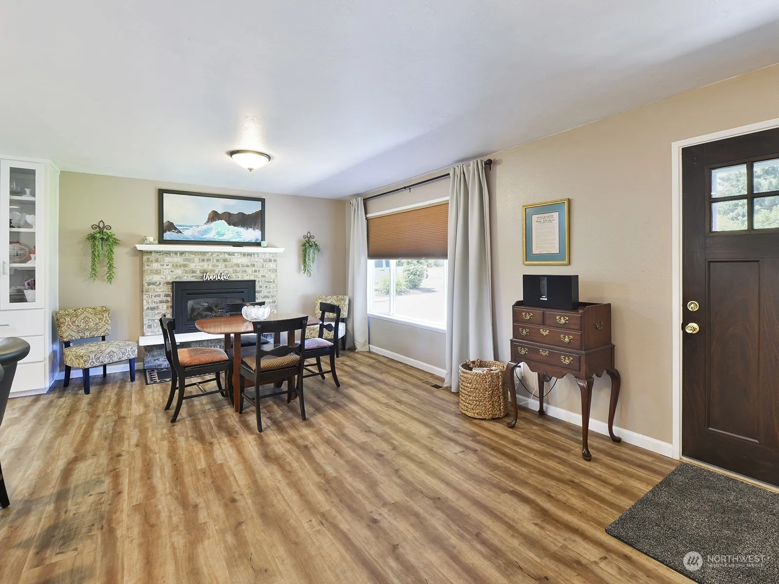 Your new home awaits! Situated on a dead-end street, this one level home has been meticulously maintained & is bursting with charm. The kitchen is bright & beautiful with new quartz countertops & cabinets that extend over to the coffee bar/wet bar. New carpet in the spacious living room leads out to the fully fenced & tranquil backyard. Mature landscaping, fruit trees, garden space, the composite deck & 2 sheds make this backyard a summers delight. Retreat inside for central AC. New roof in 2022 w/ added solar tubes in the bathroom & freshly painted exterior in 2021. Gas fireplace, furnace & tankless water heater have been serviced yearly. Large double car garage has access outside & inside & to the attic w/ pull down stairs. Move in ready!