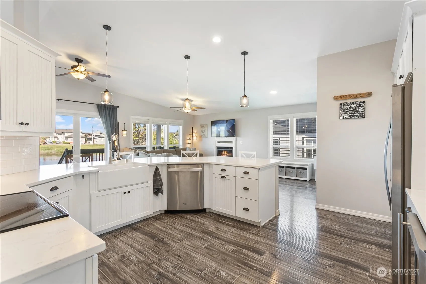 Nestled on the shores of Agate Lake, this modern finished beach house boasts a unique charm. This open floor plan, single-level home showcases a covered deck overlooking the lake, perfect for hosting BBQs or enjoying a relaxing evening as the sun sets. The kitchen features stainless steel appliances, a wine refrigerator, large pantry and quartz countertops. With 3 beds, 2 bath, and 1567 sq ft of living space, this property is well-suited as a full-time residence or a weekend getaway. Relax in the master suite with lake views, a large tub and a tile shower. Residents can take advantage of Sandy Point’s amenities, including a marina, golf course, pool, club house and tennis courts.