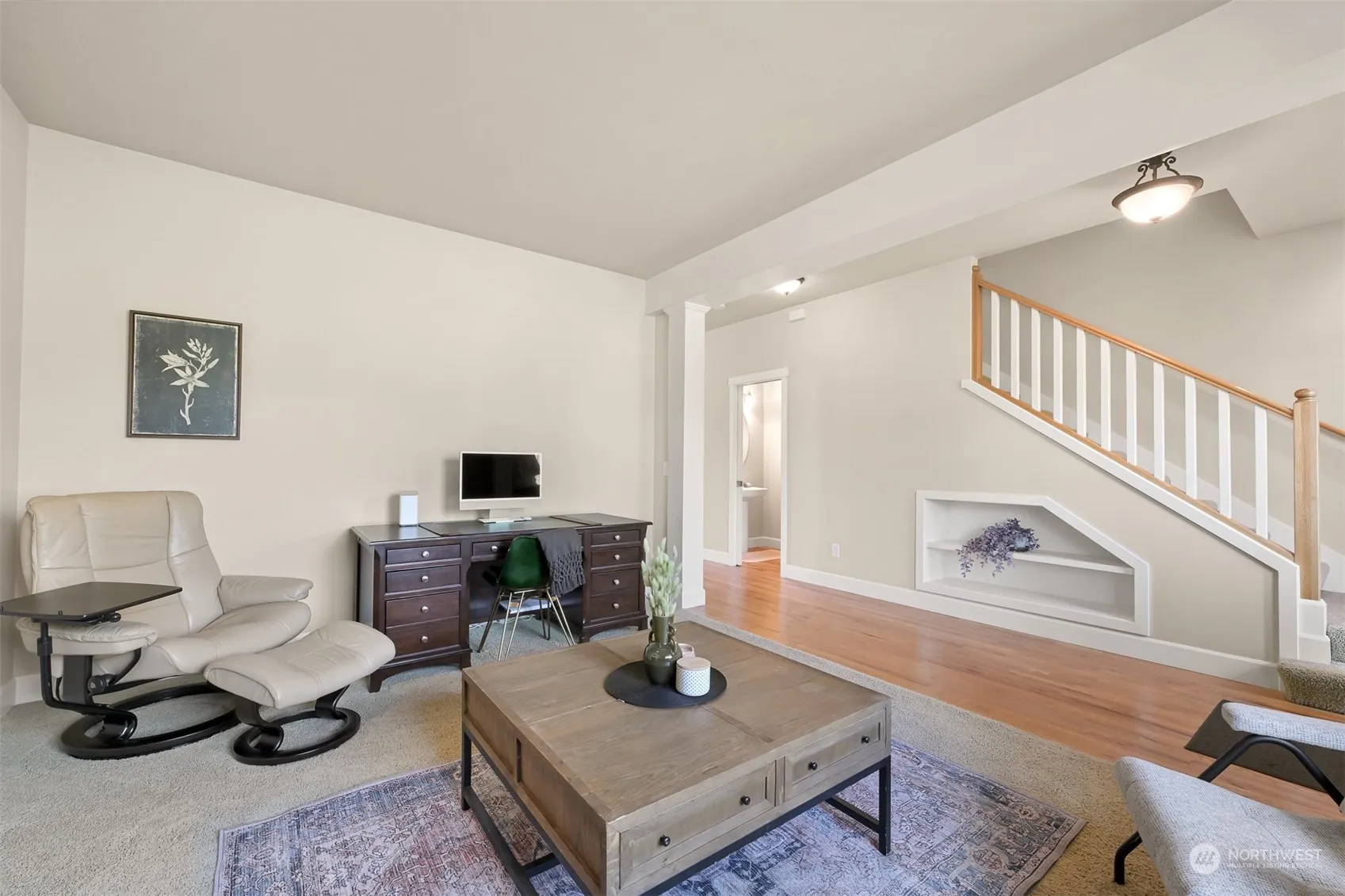 Meticulously maintained home nestled on a serene tiered lot backing onto a tranquil pond and greenspace. The spacious floor plan boasts a large kitchen, living room & great room, perfect for unforgettable gatherings. Featuring 9-foot ceilings, a luxurious primary bedroom with ensuite bath & walk-in closet, shaker-style maple cabinets, granite-tile counters, hardwood oak floors, large kitchen island & laundry room with additional utility sink and ample storage. Recent upgrades include a new roof (2021) and a new furnace and central A/C (2022). The sunlit SW-facing deck & generously sized yard are ideal for both relaxation and lively entertainment. Conveniently located near charming downtown Ferndale and walking distance to multiple schools.