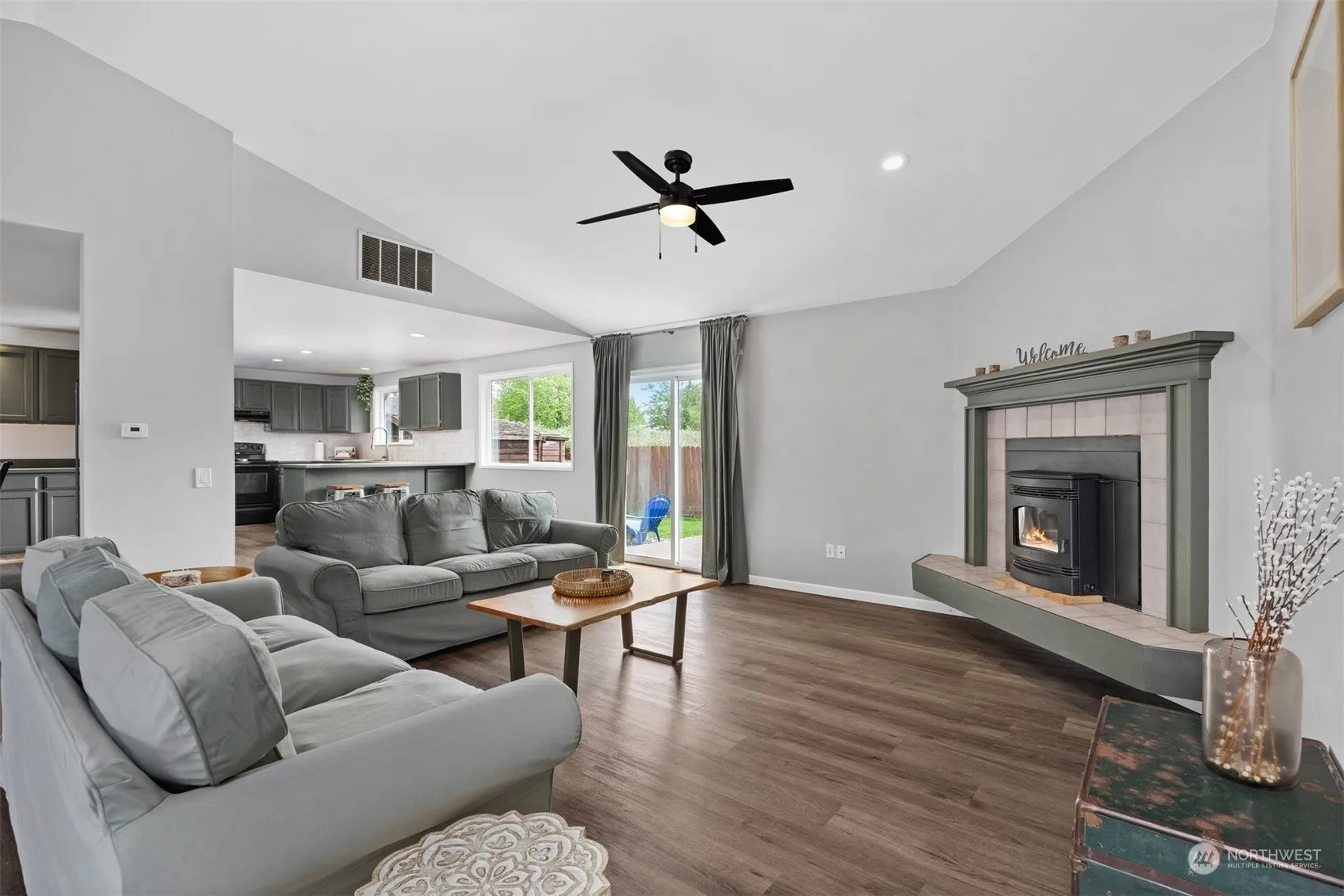 Charming single-level 3-bedroom, 2-bathroom home nestled in a quaint Ferndale location! Interior features include great room floor plan with convenient built-ins and new LVP floors, offering the perfect space for cozy gatherings. The family room boasts a welcoming pellet stove, adding warmth and ambiance to the space. Primary suite offers a walk-in closet, double sinks, and tub along with a separate shower. Outside, enjoy newer decking and the fully fenced backyard, a gazebo, and hot tub, perfect for outdoor enjoyment. With RV parking available, this home offers convenience and versatility. Located close to schools, a bus stop, and easy access to I-5.