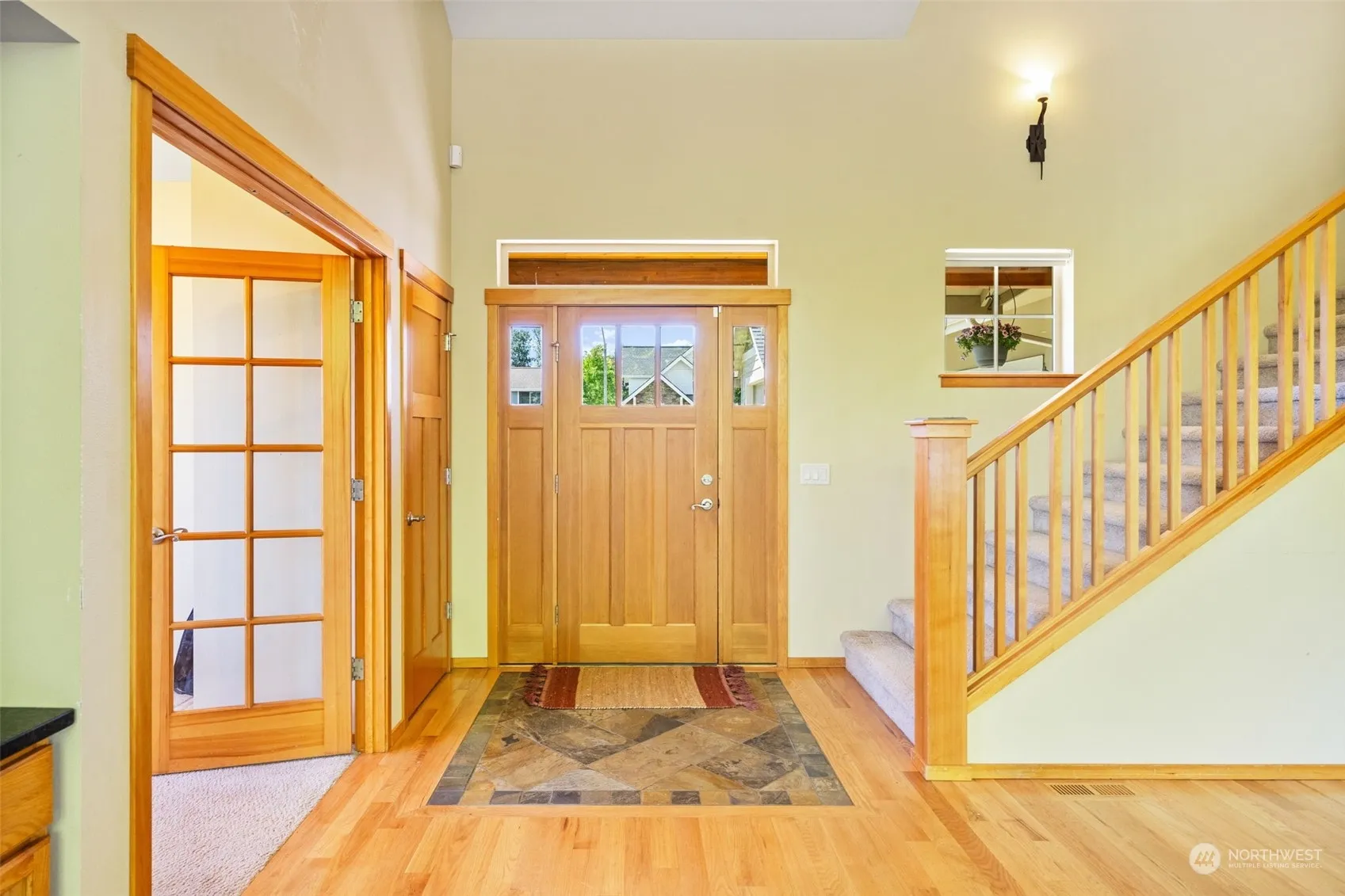 Welcome to your forever home in this coveted Ferndale neighborhood, featuring an expansive 4-bed, 2.5-bath layout with a dedicated office. Large windows flood the living area with natural light, creating a warm and inviting atmosphere. From the hardwood and slate flooring underfoot to the soaring vaulted ceilings. Chef’s kitchen, surrounded by shaker cabinets, granite counters, stainless steel appliances and a 5-burner commercial cooktop.The primary bedroom is your personal sanctuary, with its own deck and see-through fireplace that warms both your room and the soaker tub. The 3-car garage, complete with a 10 ft door. Finally, step through French doors to a covered patio and a zen-like yard, with a cozy fire pit perfect for gatherings.