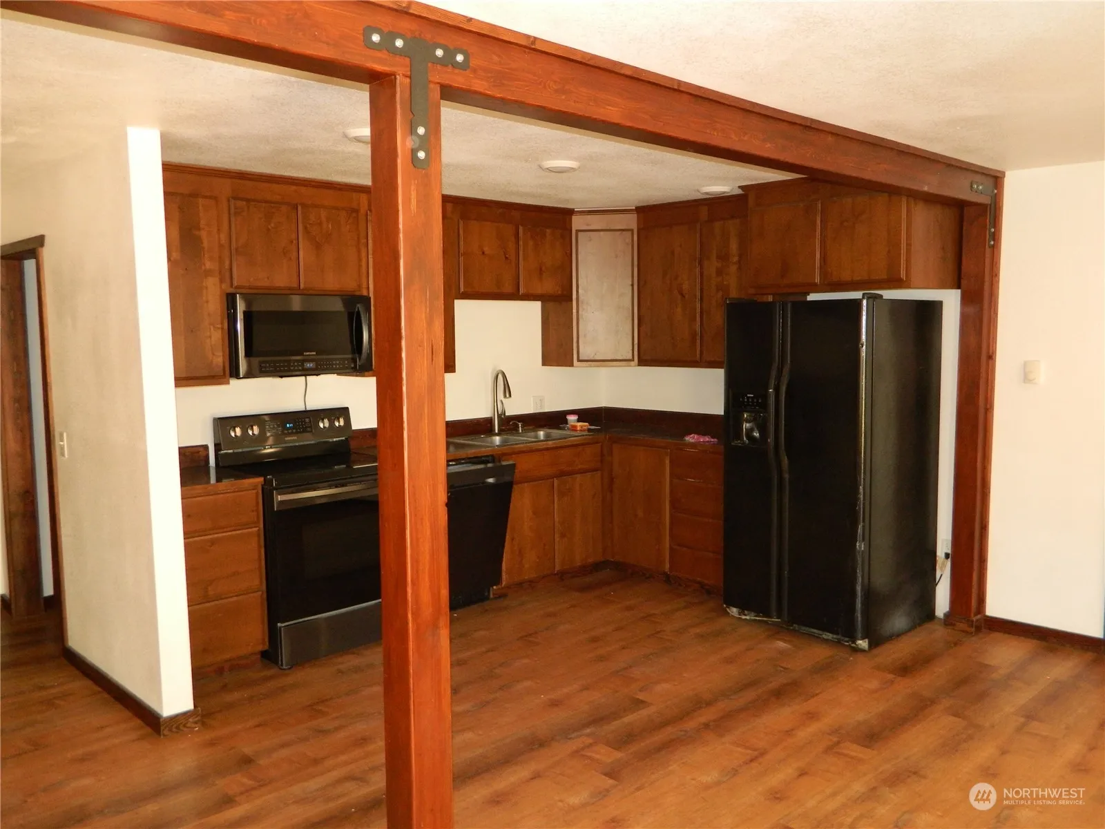 3 bedroom home in town, with a 2 car garage on a large lot, back yard with deck and outbulding for shop space or storage. Borders Bonaparte creek in the back yard. Bonus room in the garage complete with 3/4 bath. Nicley secluded at the end of the street, updated vinyl flooring throughout, close to Tonasket amenities. Easy flat access not too far off Highway 97 if commuting North or South is your need. Kitchen, dining open to living room, with 1/2 bath off the kitchen / dining area.